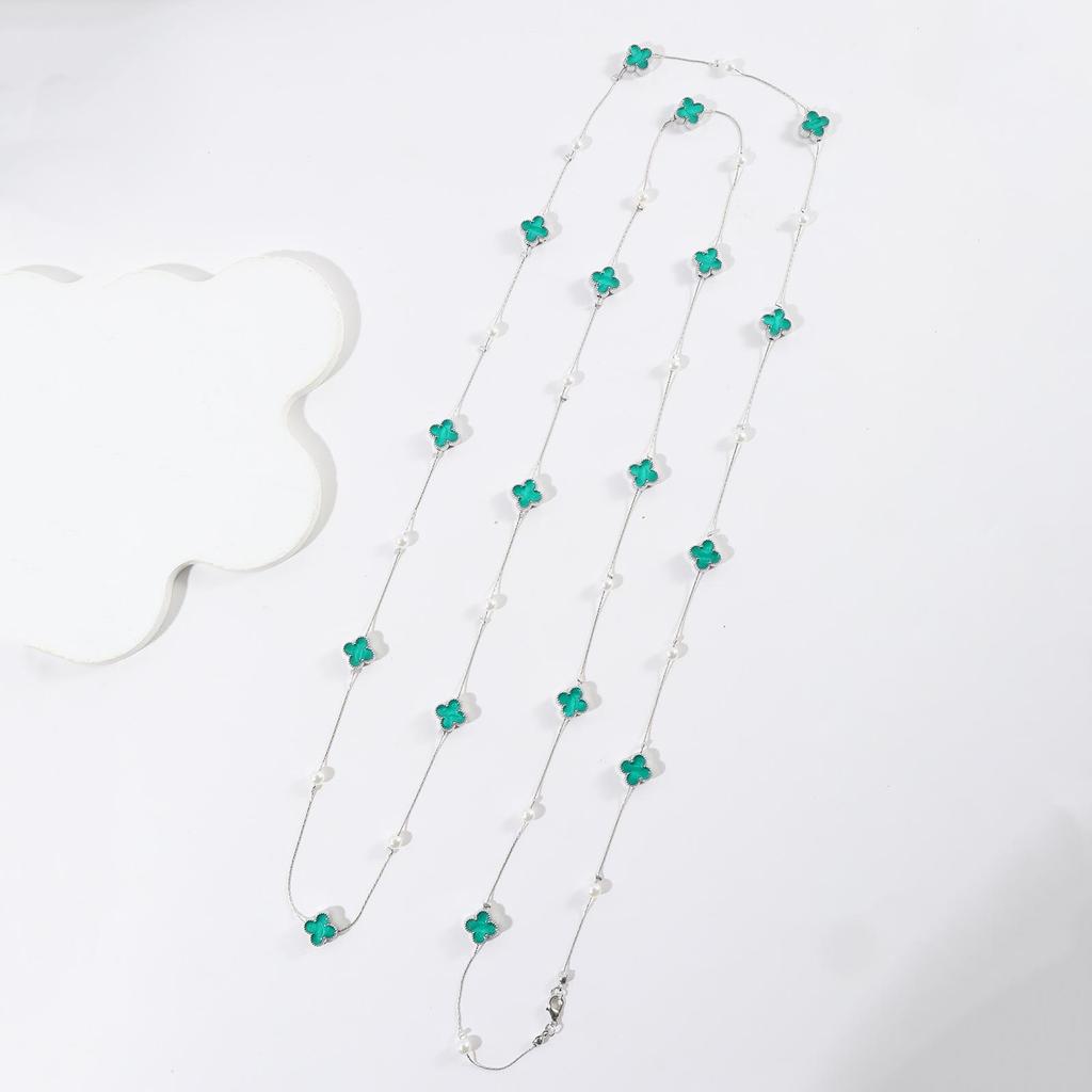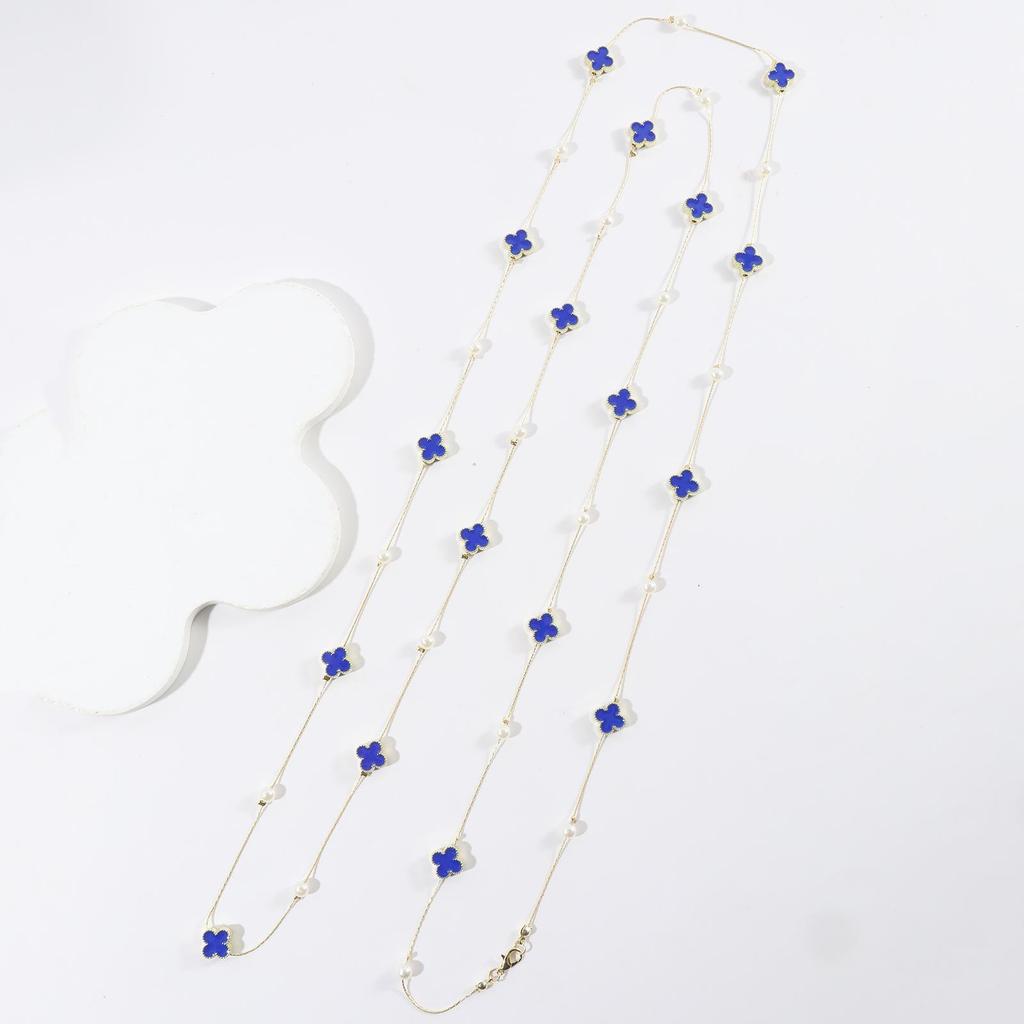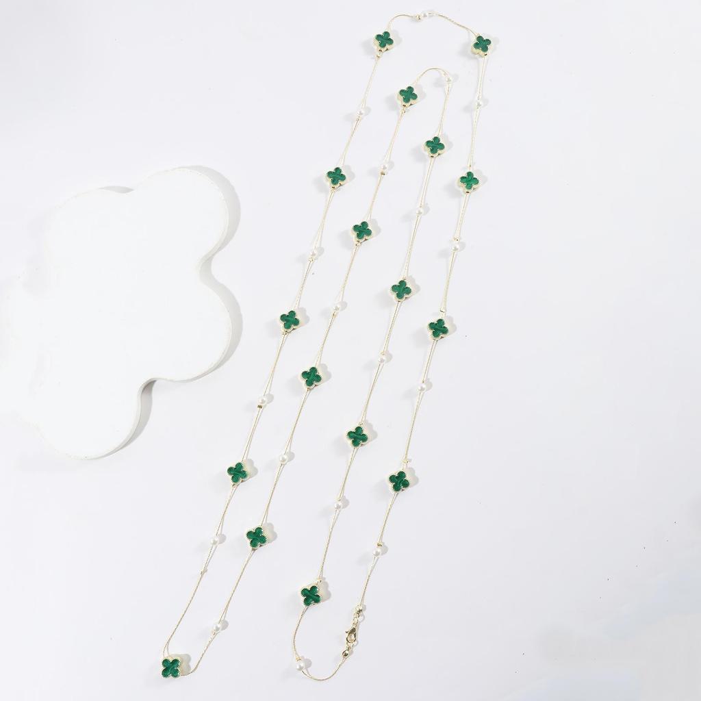 Длинная цепочка-ожерелье с четырехлистным клевером (170см) - Семнадцать капель масла дизайн для осени и зимы