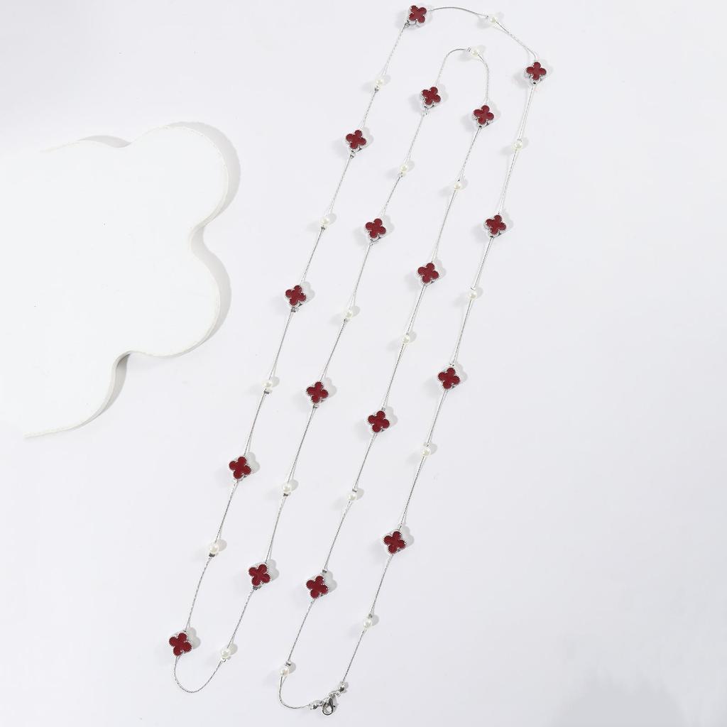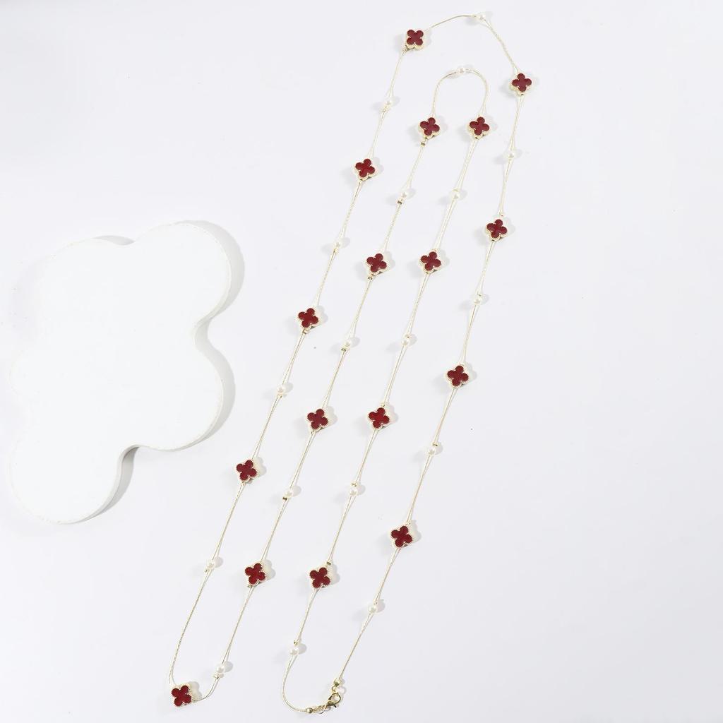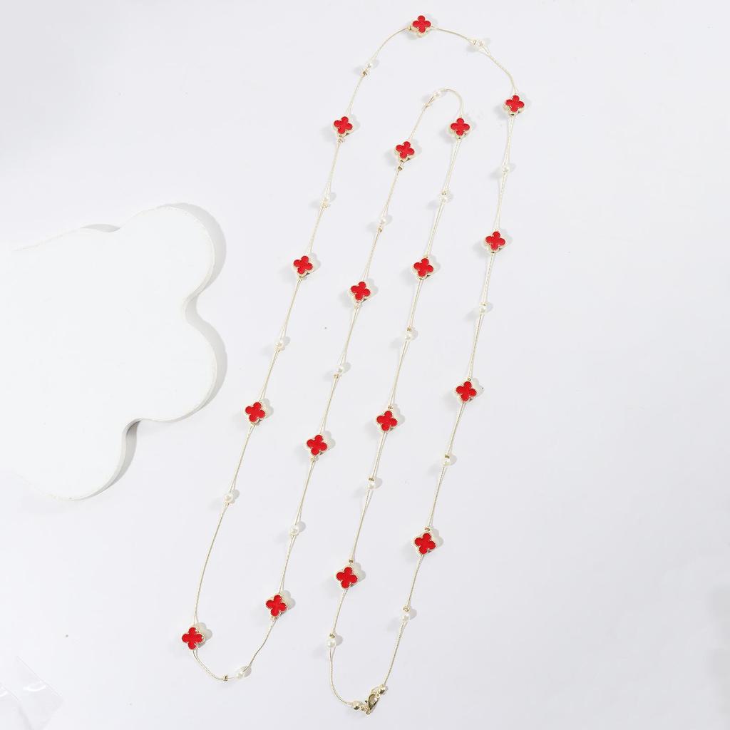 Длинная цепочка-ожерелье с четырехлистным клевером (170см) - Семнадцать капель масла дизайн для осени и зимы