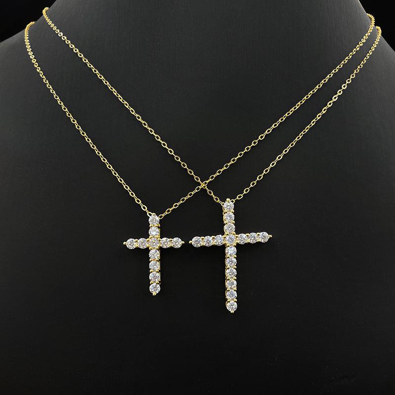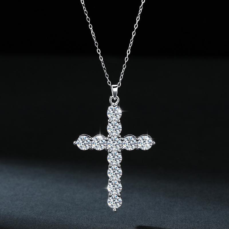 Ожерелье-крест из стерлингового серебра 925 пробы с муассанитом - Европейская и американская мода, хип-хоп кулон для мужчин и женщин.