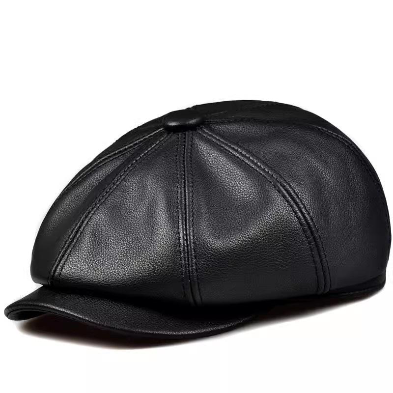 Мужской осенне-зимний берет-восьмиуголка из натуральной кожи - Повседневная восьмиугольная шляпа для мужчин среднего и пожилого возраста