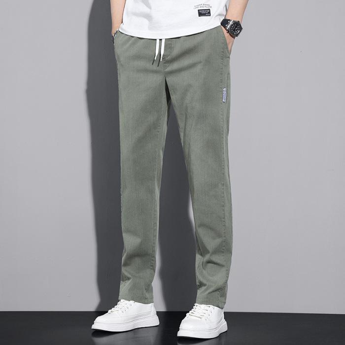 Весенние и летние эластичные повседневные брюки, мужские прямые длинные брюки в корейском стиле, мужские прямые брюки