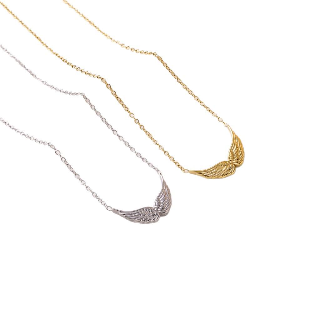 Персонализированное ожерелье с подвеской в виде ангельских крыльев из 18-каратного золота для женщин - Подарок из ювелирной стали