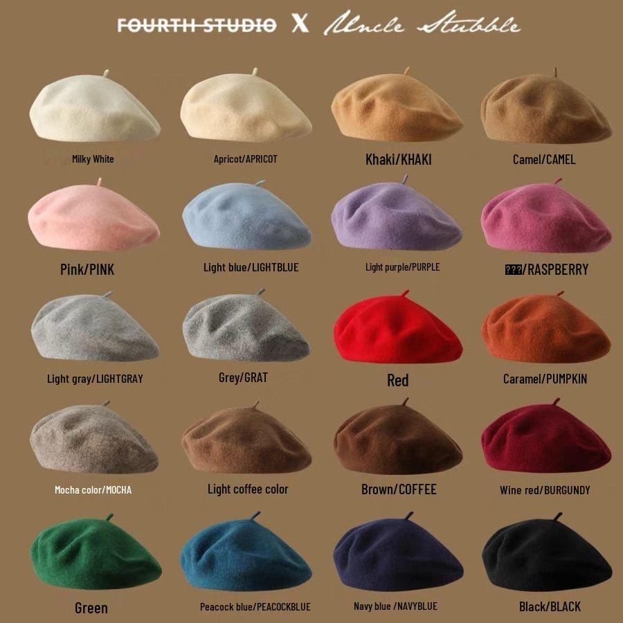 Женский ретро шерстяной берет: Универсальная фетровая шляпа на осень и зиму однотонной расцветки, в корейском стиле художника.