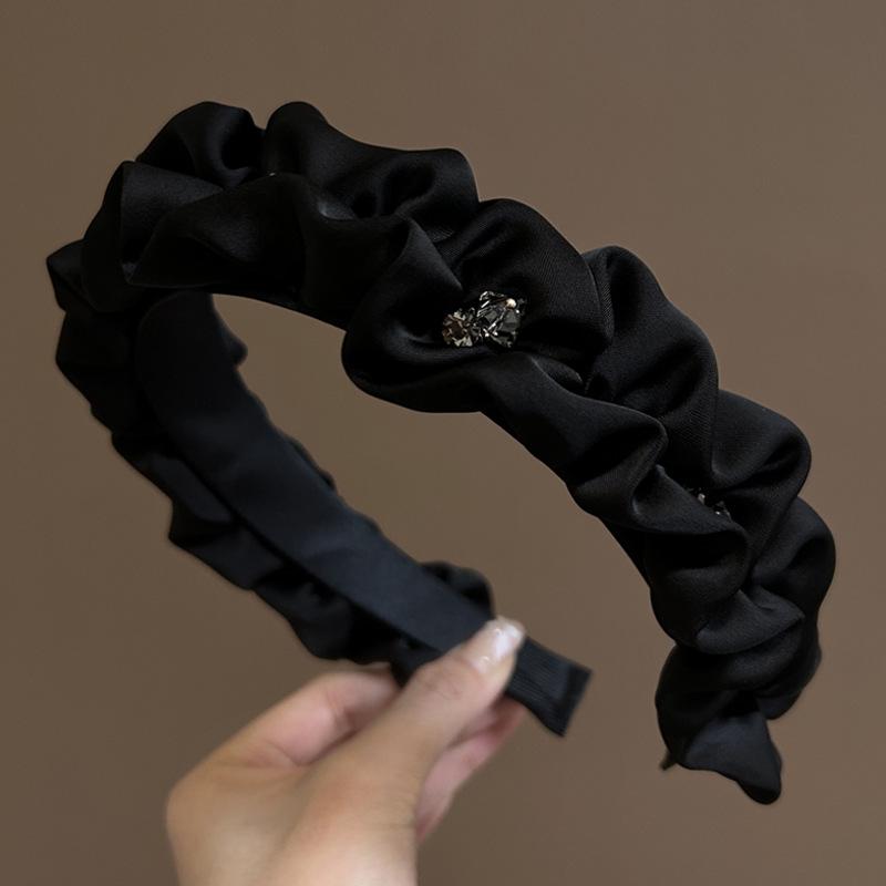 Элегантная женская повязка на голову со стразами и плиссированным высоким верхом