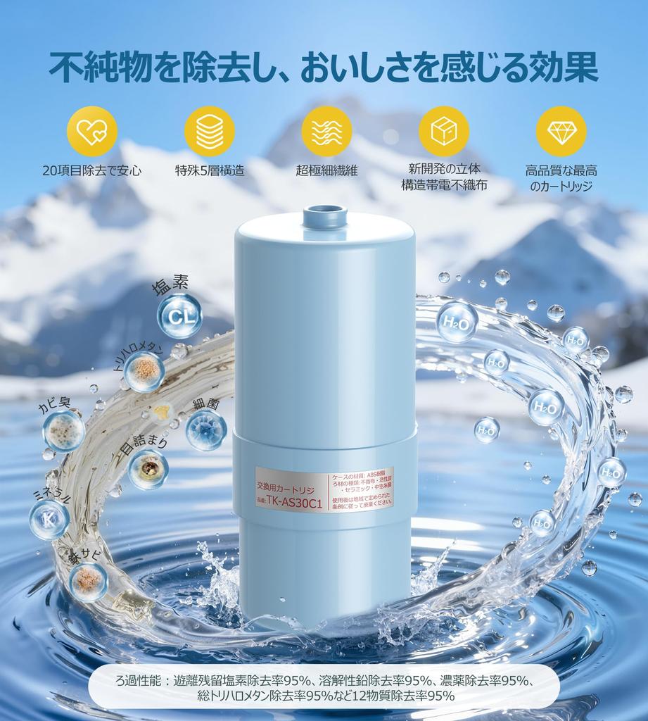 [Вода высокого качества, превосходящая японские стандарты! Наслаждайтесь вкусной водой в течение года] Он не только удаляет 17 веществ, указанных в Японском промышленном стандарте (JIS S 3201), но он также надежно удаляет железо (мелкие частицы) и алюминий (нейтральный) согласно стандарту Японской ассоциации производителей водоочистителей (JWPAS B). Он также устраняет вкус и запах ржавчины и алюминия.. Наслаждайтесь безопасной, мягкой, вкусной водой примерно год. Наша уникальная антибактериальная технология подавляет рост бактерий внутри фильтра, поэтому ваша вода остается свежей.. Используйте его в чае, в кулинарии или просто пейте в чистом виде... Каждый день вода создает более богатые, счастливые моменты.