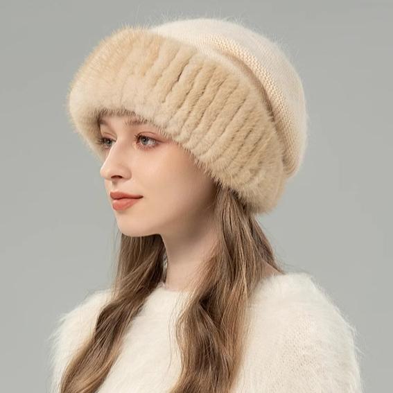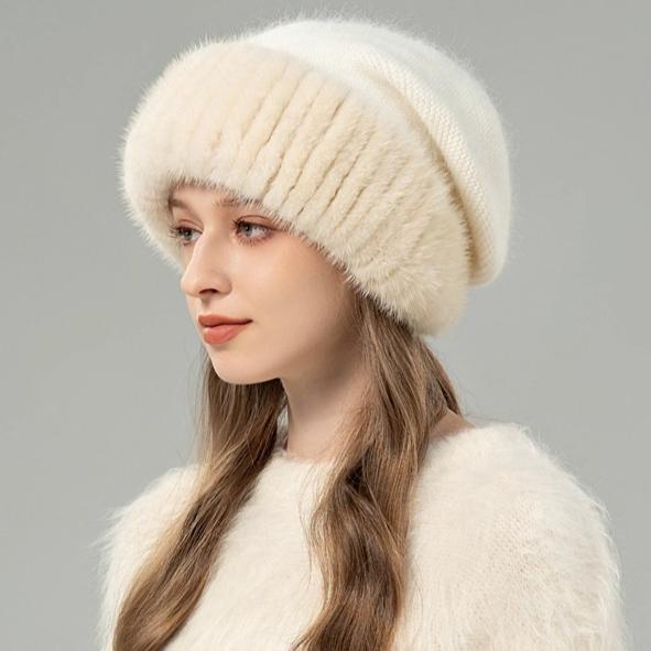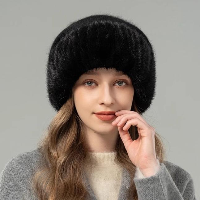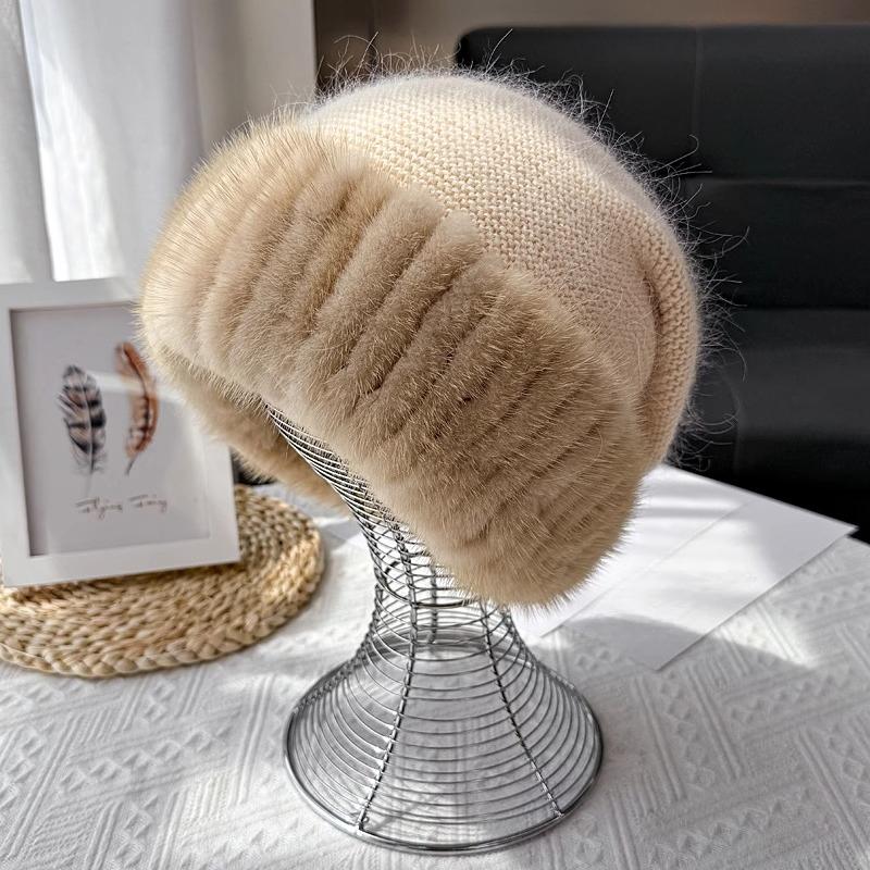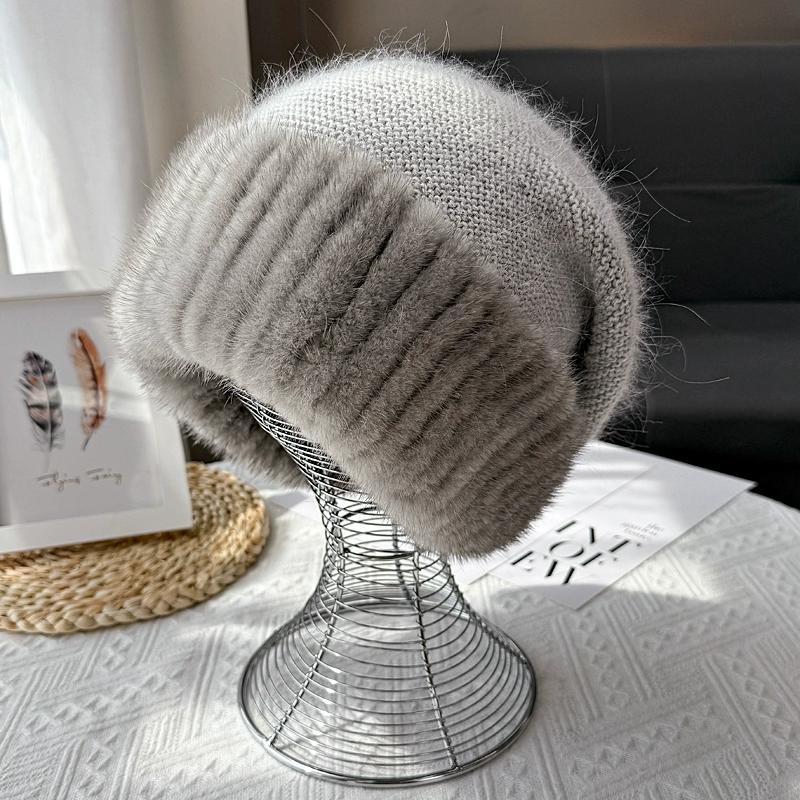Шапка из норкового меха женская корейская версия зимняя новая шапка вязаная из смеси кроличьего пуха темпераментная шапка-повязка, подчеркивающая лицо, маленькая меховая шапка