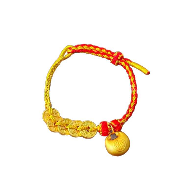 Древний Золотой Песок Монета Пять Императоров Колокольчик Браслет: Подарок из красной веревки ручной работы для девушки.