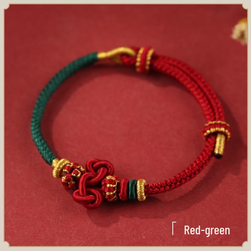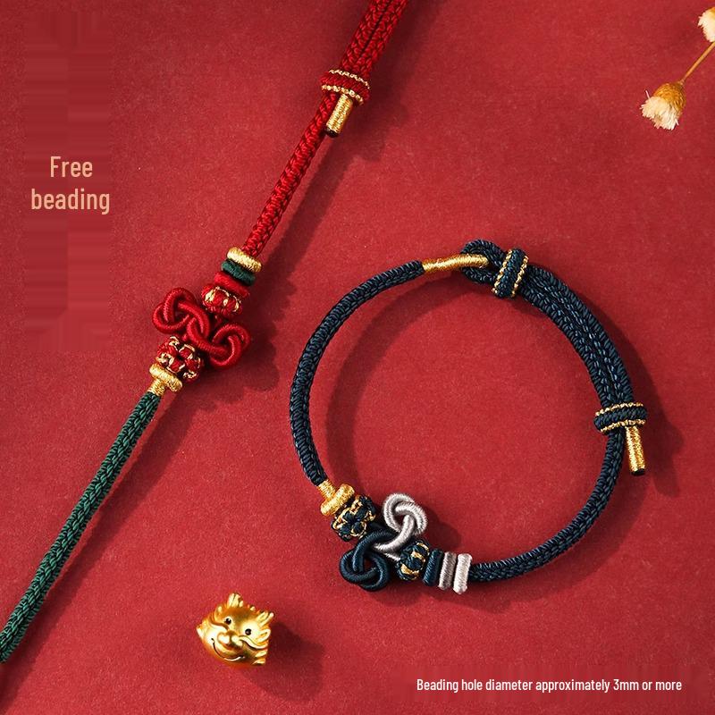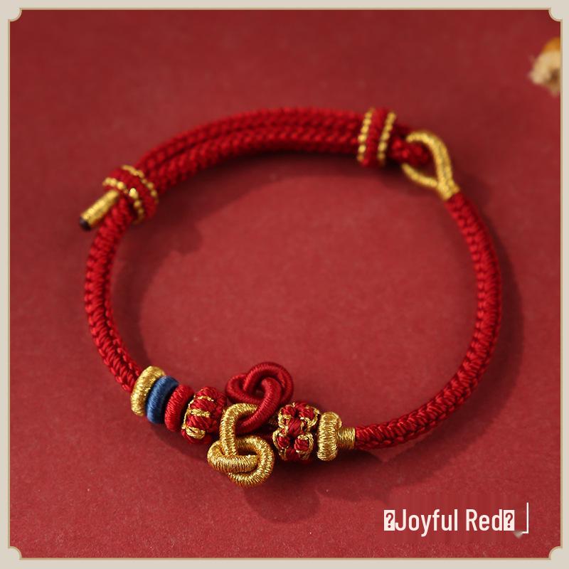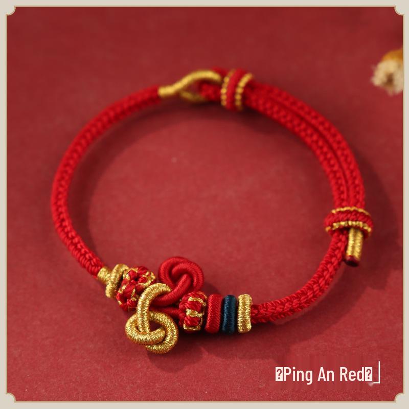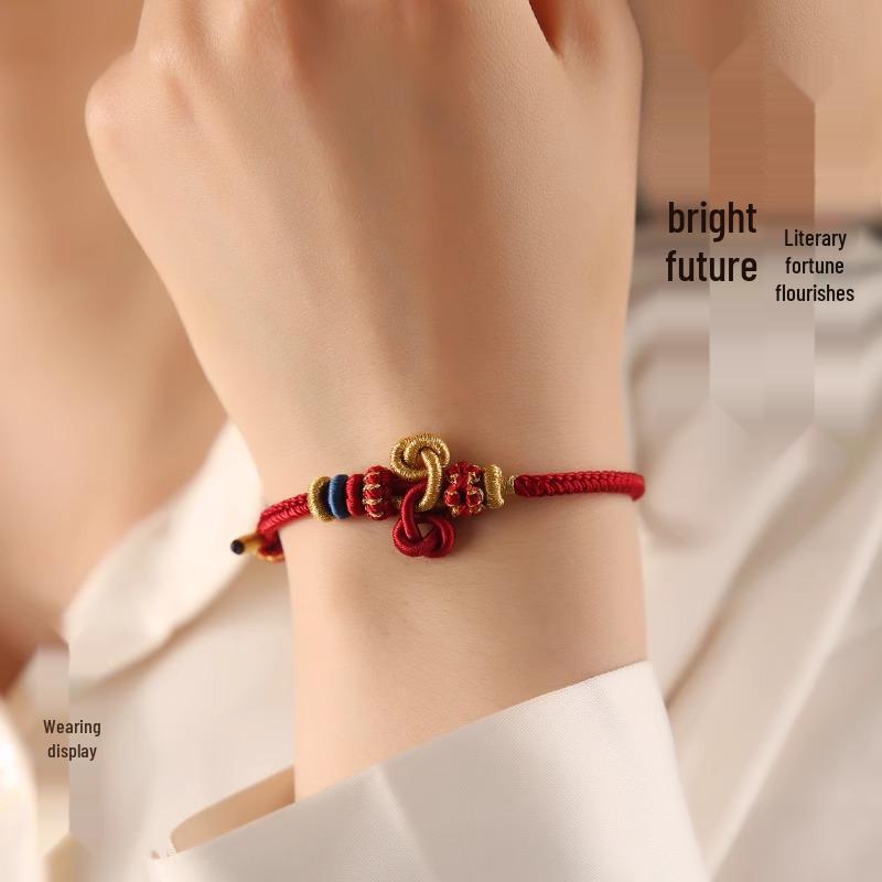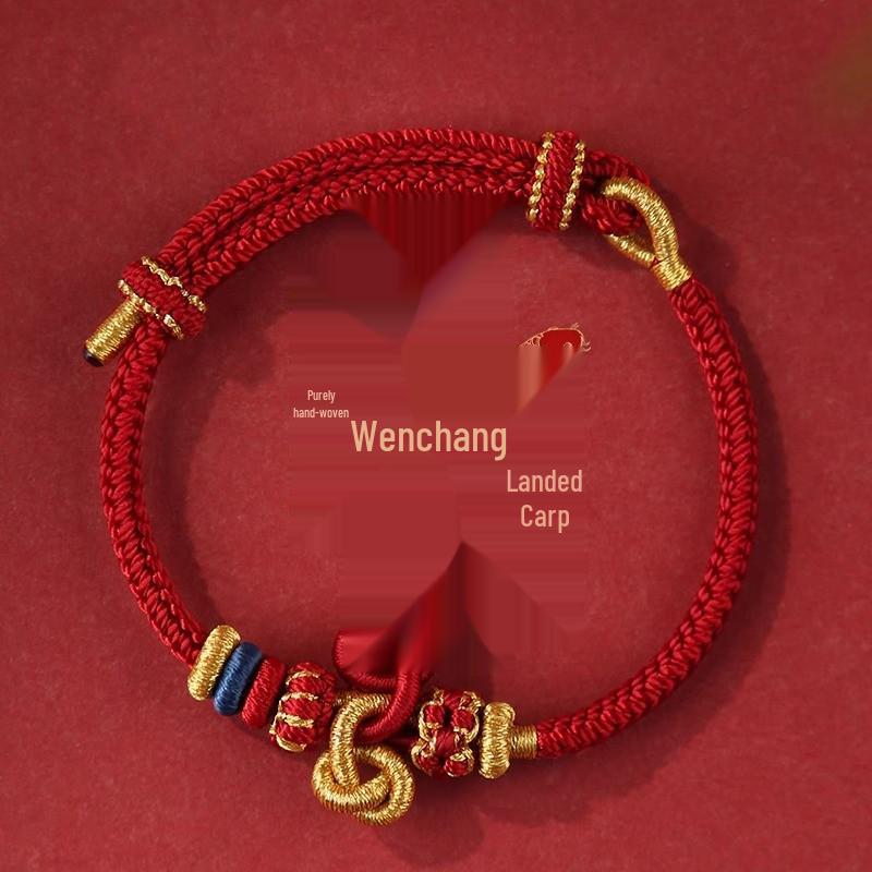 Браслет из красной нити с узлом Вэньчан, с кои и золотыми бусинами - Унисекс плетеный вручную аксессуар для студентов