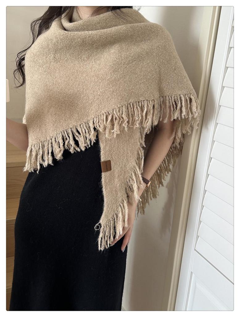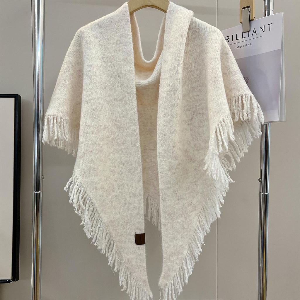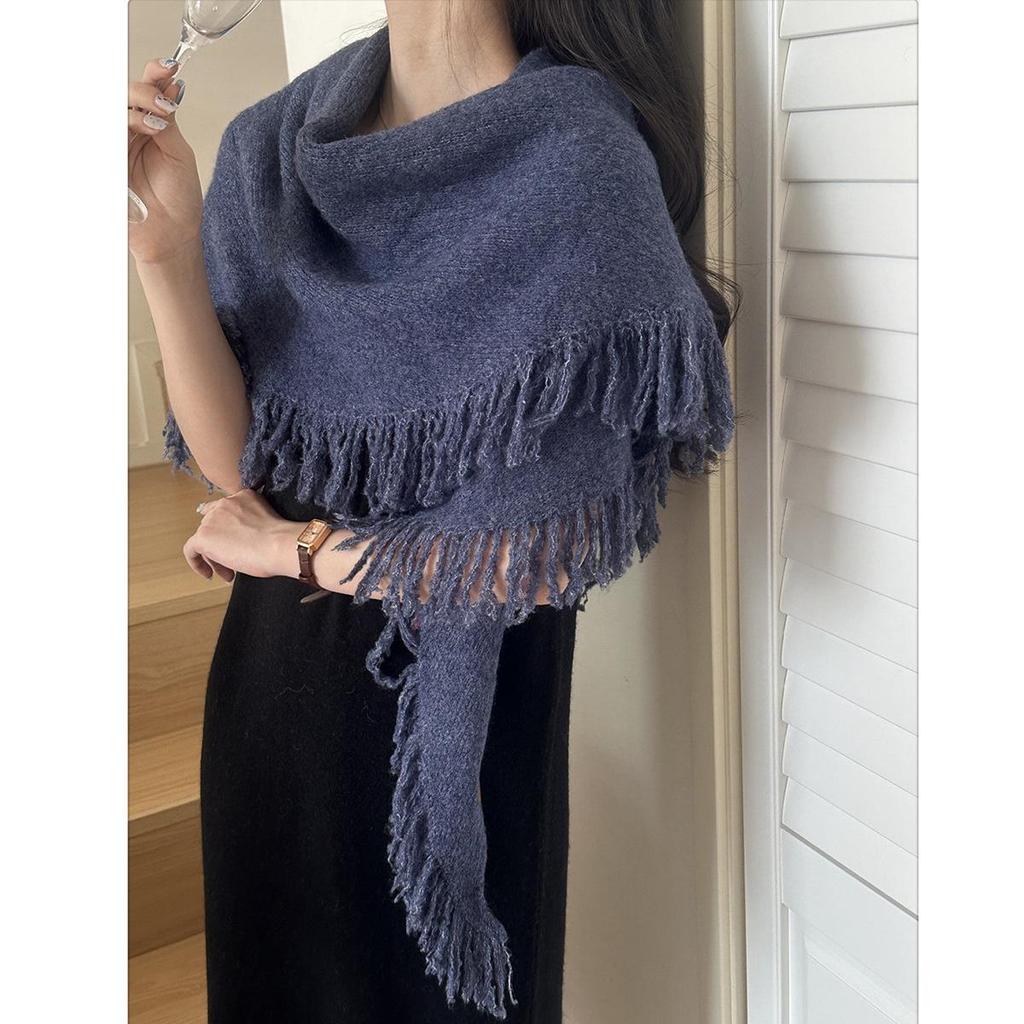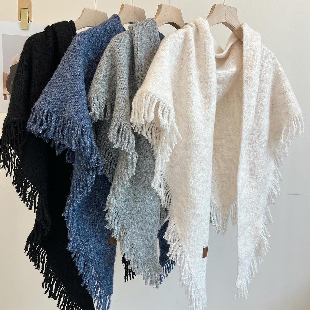 Треугольная шаль с кисточками в корейском стиле: Женский осенне-зимний однотонный универсальный уютный шарф.