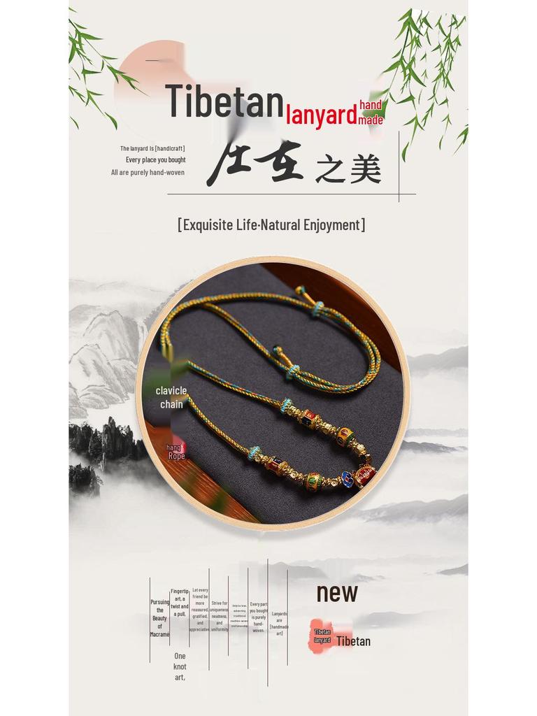 Тибетский Тханка ручной работы, подвеска, веревочное ожерелье с янтарной подвеской