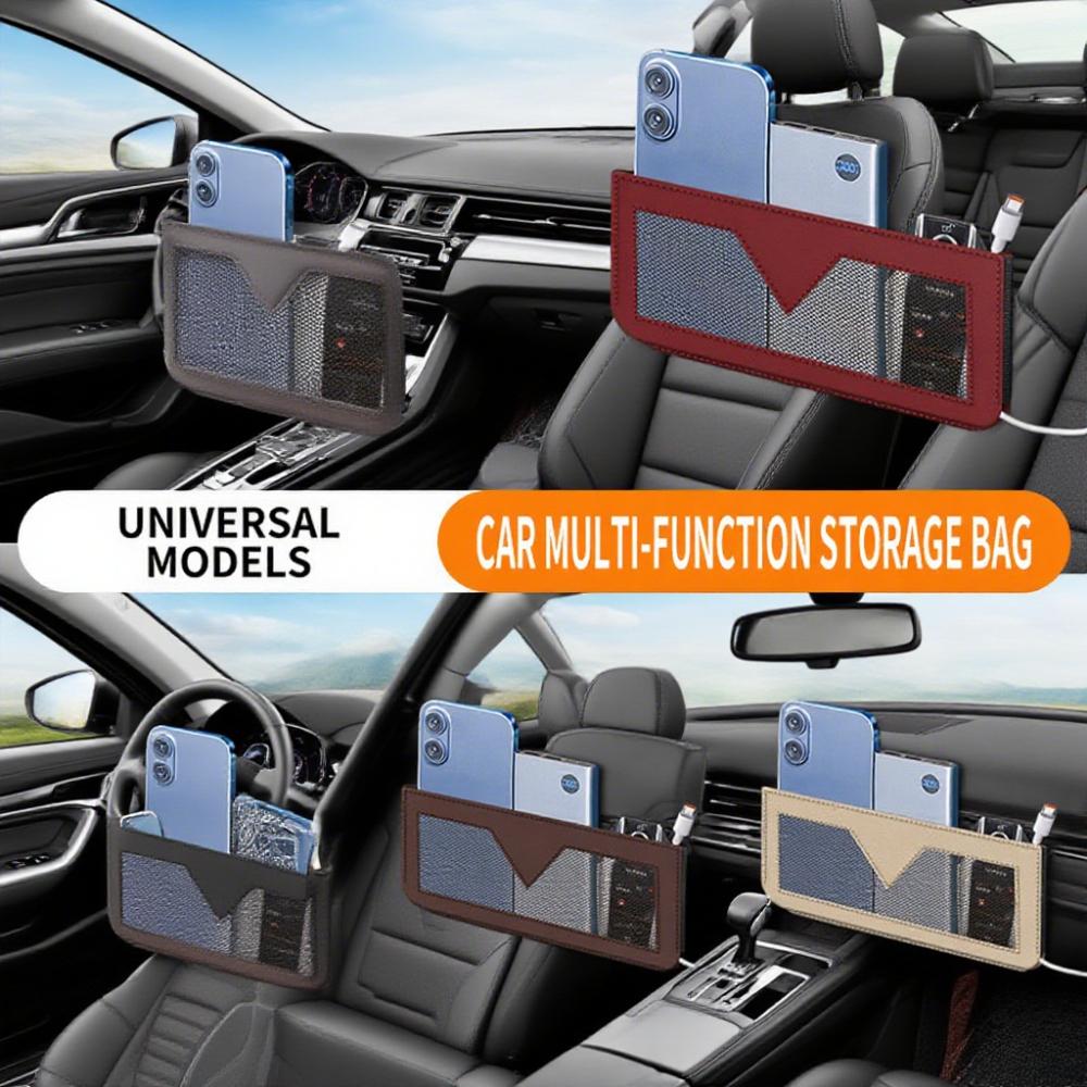 Car seat side pocket storage bag, PU leather multifunctional small car console side storage bag, mobile phone sunglasses