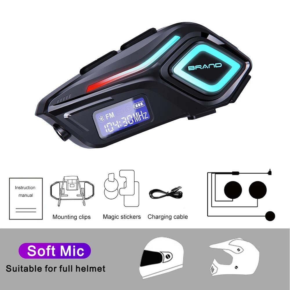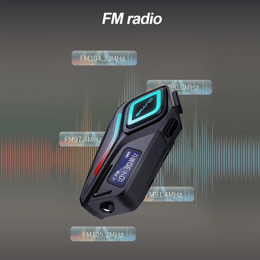 Мотоциклетная Bluetooth-гарнитура для шлема IPX8 Водонепроницаемая Беспроводное FM-радио с фонариком Громкая связь Стерео Поддержка Всех типов шлемов