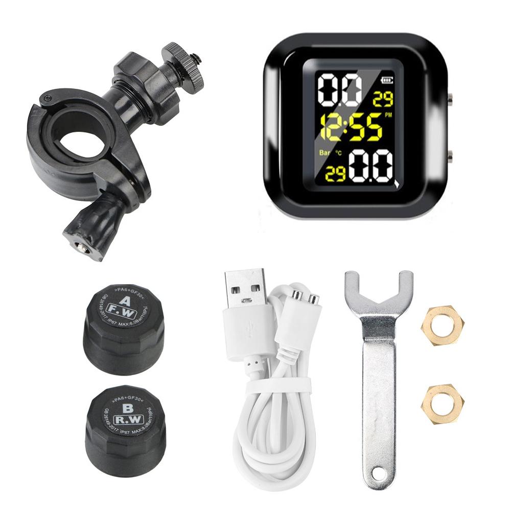 Беспроводной ЖК-дисплей Мотоциклетный TPMS Тестер температуры шин с 2 внешними датчиками Беспроводной детектор давления в шинах мотоцикла
