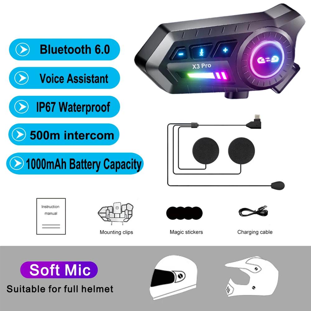 KEBIDUMEI 1/2x Мотоциклетная гарнитура-интерком Шлем BT 6.0 для 2 райдеров интеркоммуникатор 500 м Поддержка FM с подсветкой