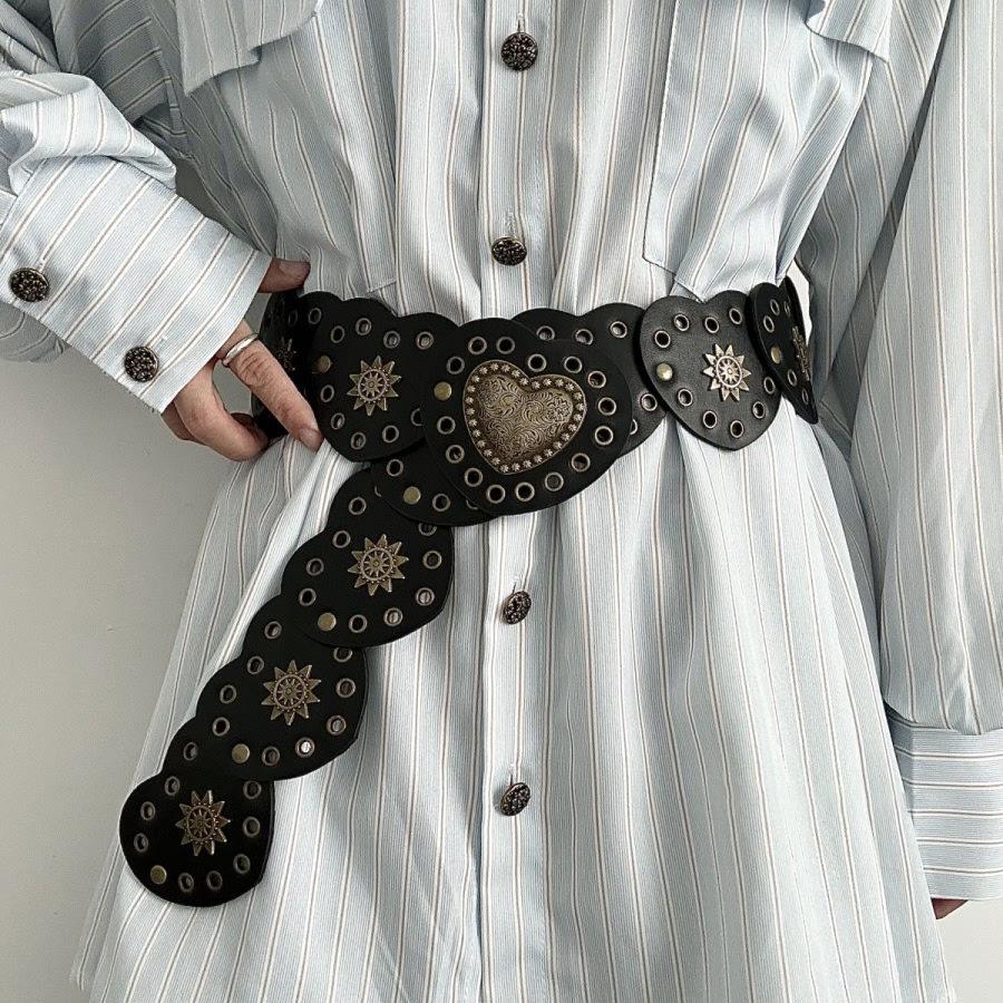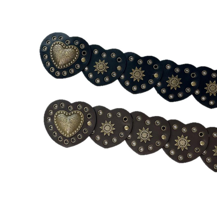 Панк Стиль Женский Кожаный Лоскутный Пояс-Цепочка на Талию в Форме Сердца с Заклепками