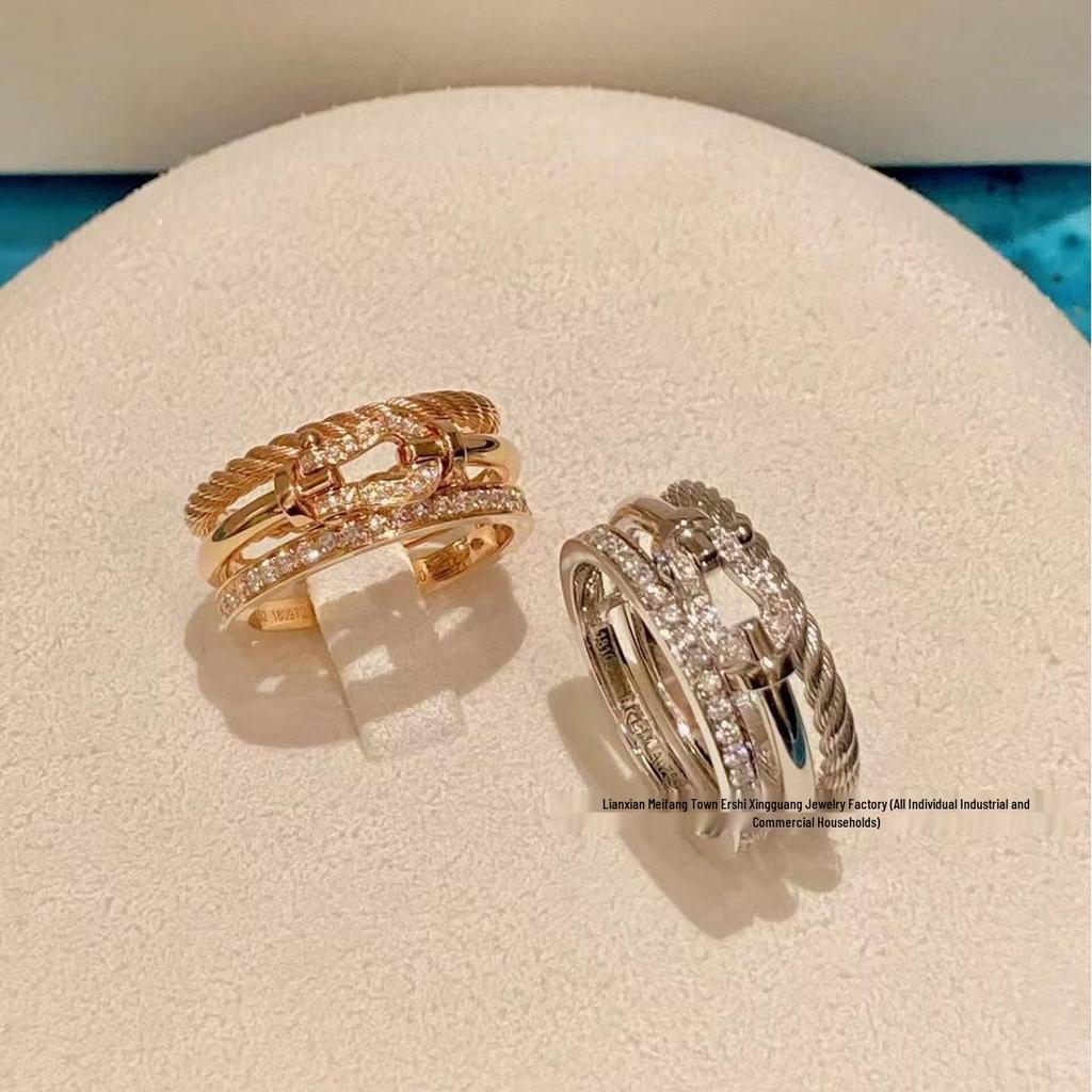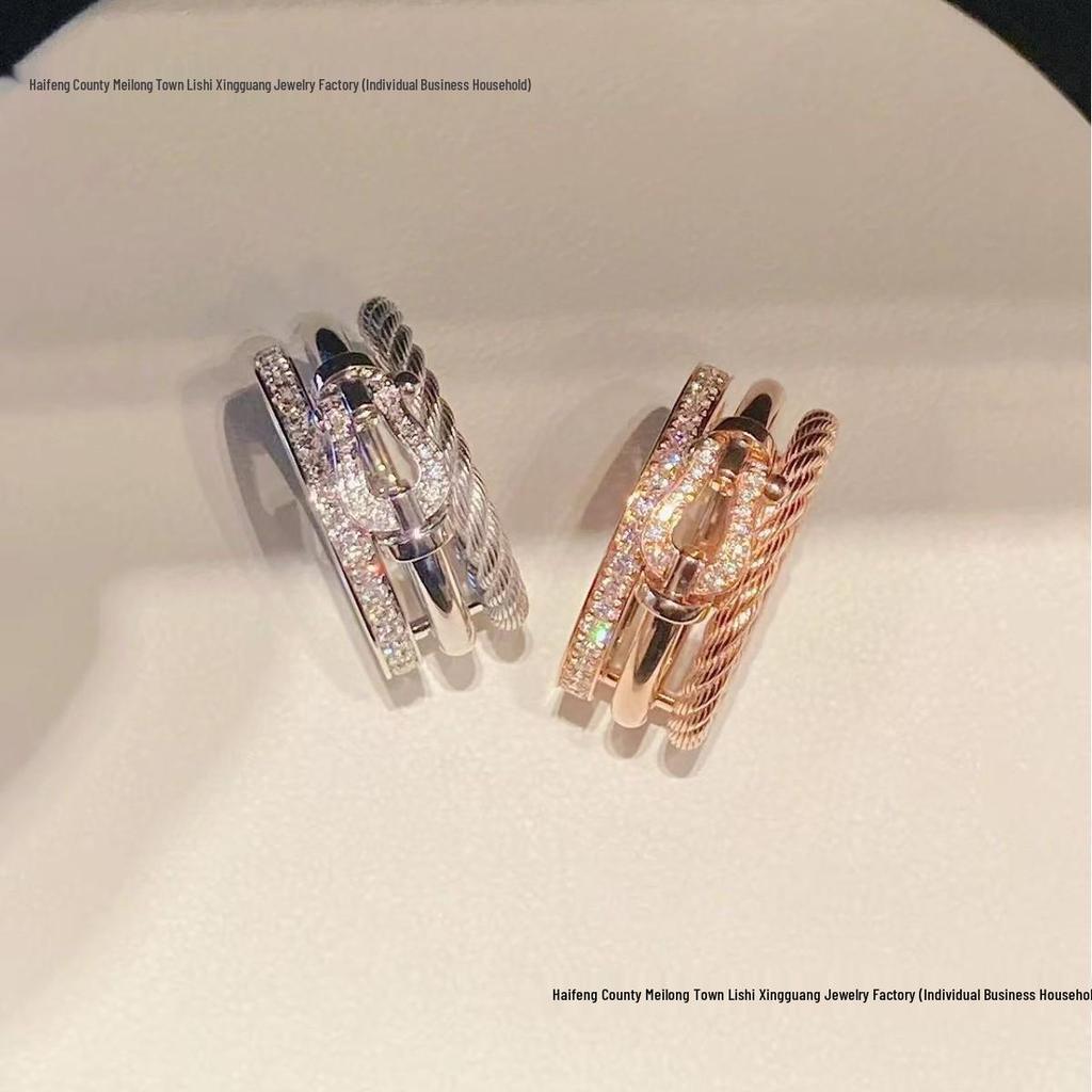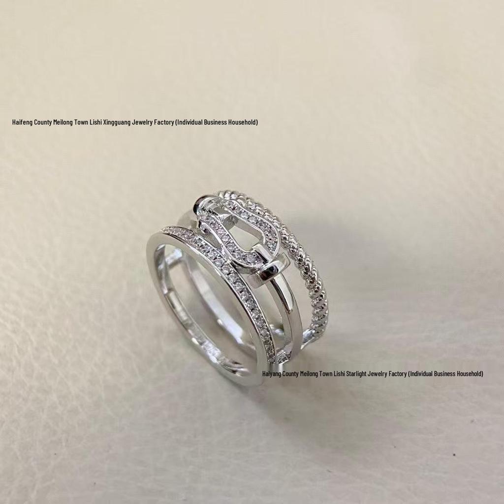 Fred Horseshoe Buckle Diamond Trio Ring - Premium Couple's Versatile Xiaohongshu Style