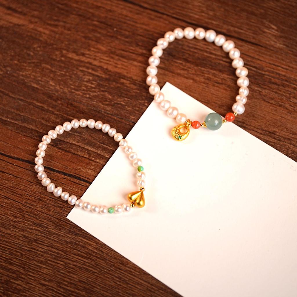 New Chinese Style Freshwater Pearl & Agate Beaded Bracelet - Luxury Women's Non-Fading Jewelry