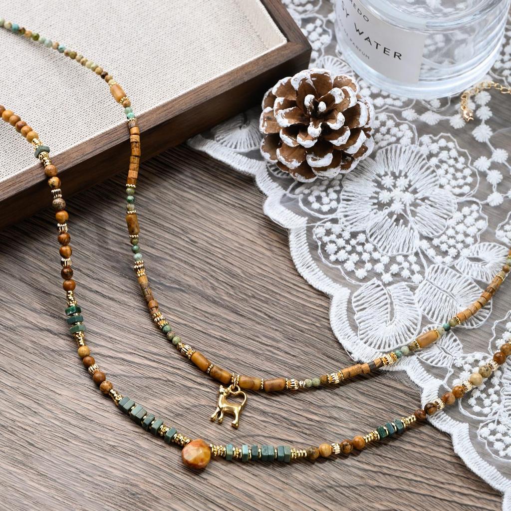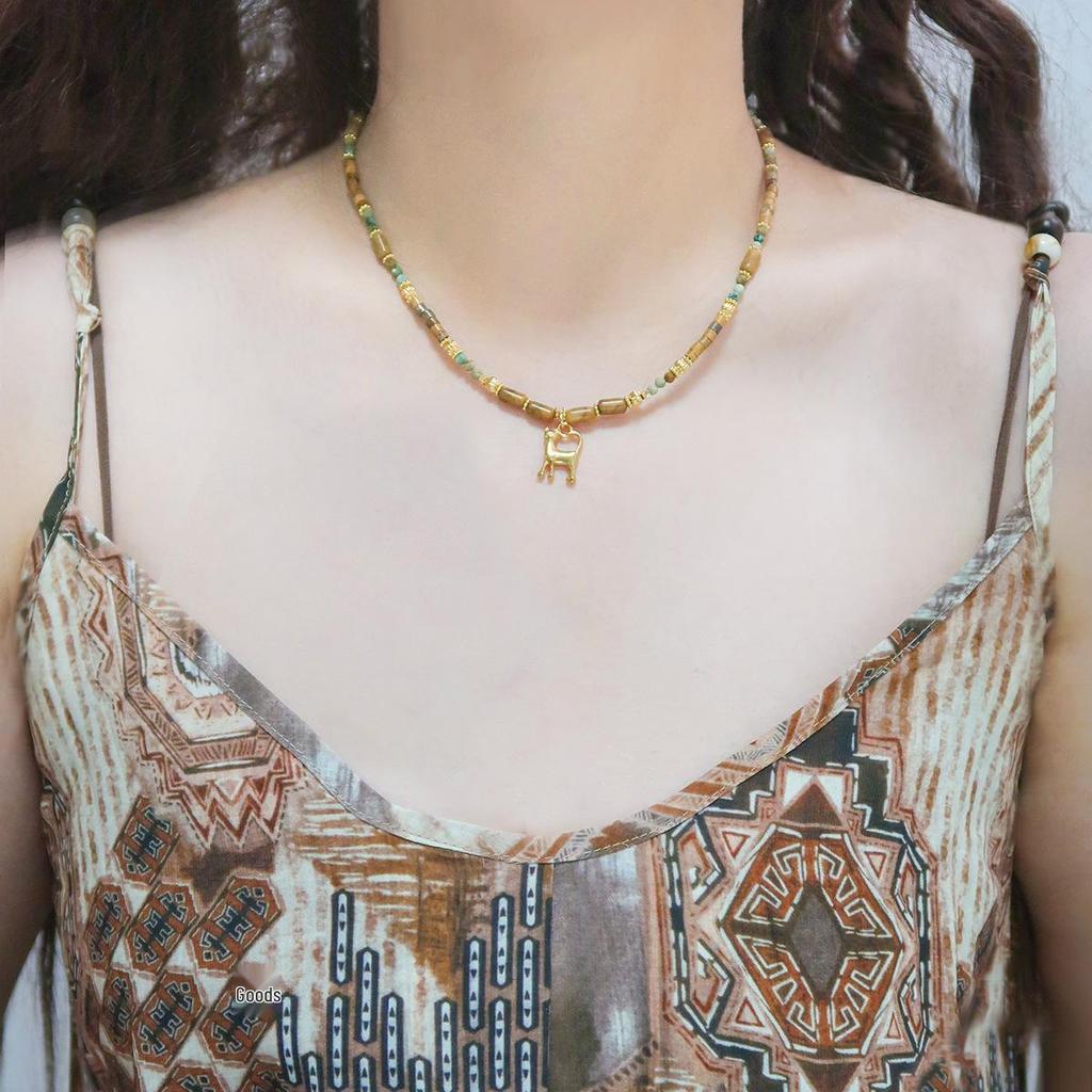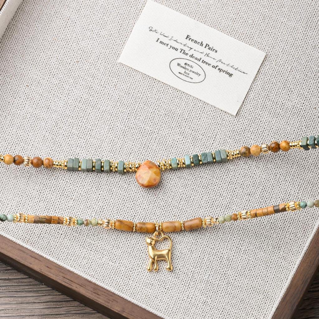 Yellow-Brown Maillard-Style Crazy Agate Cat Pendant Necklace