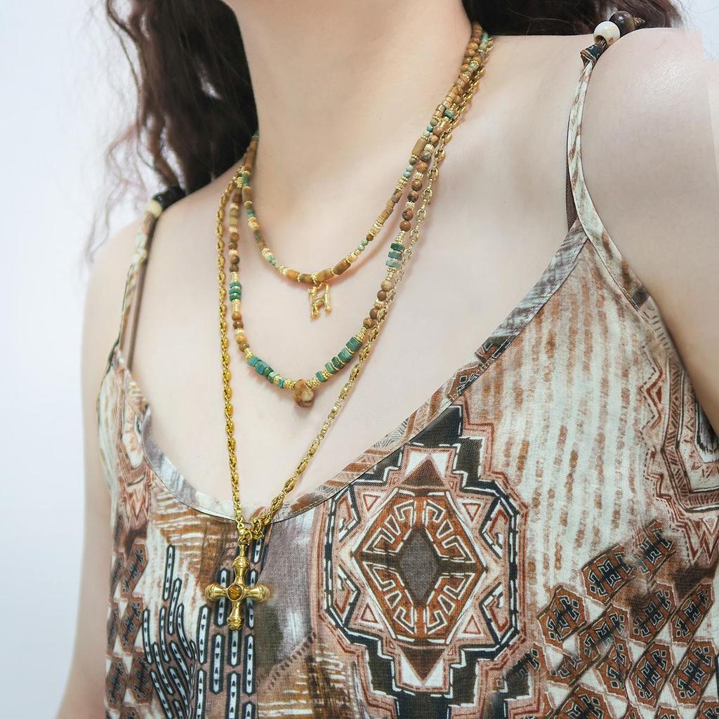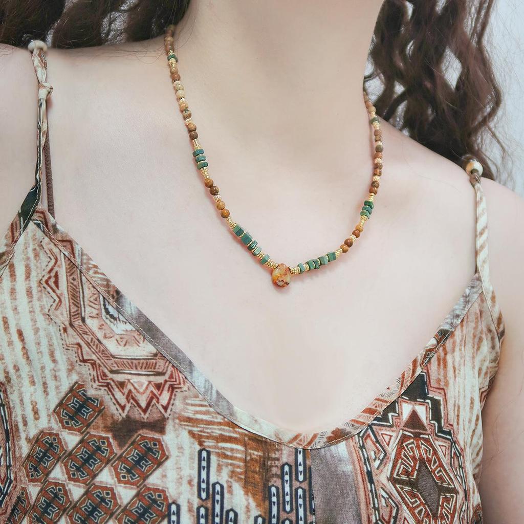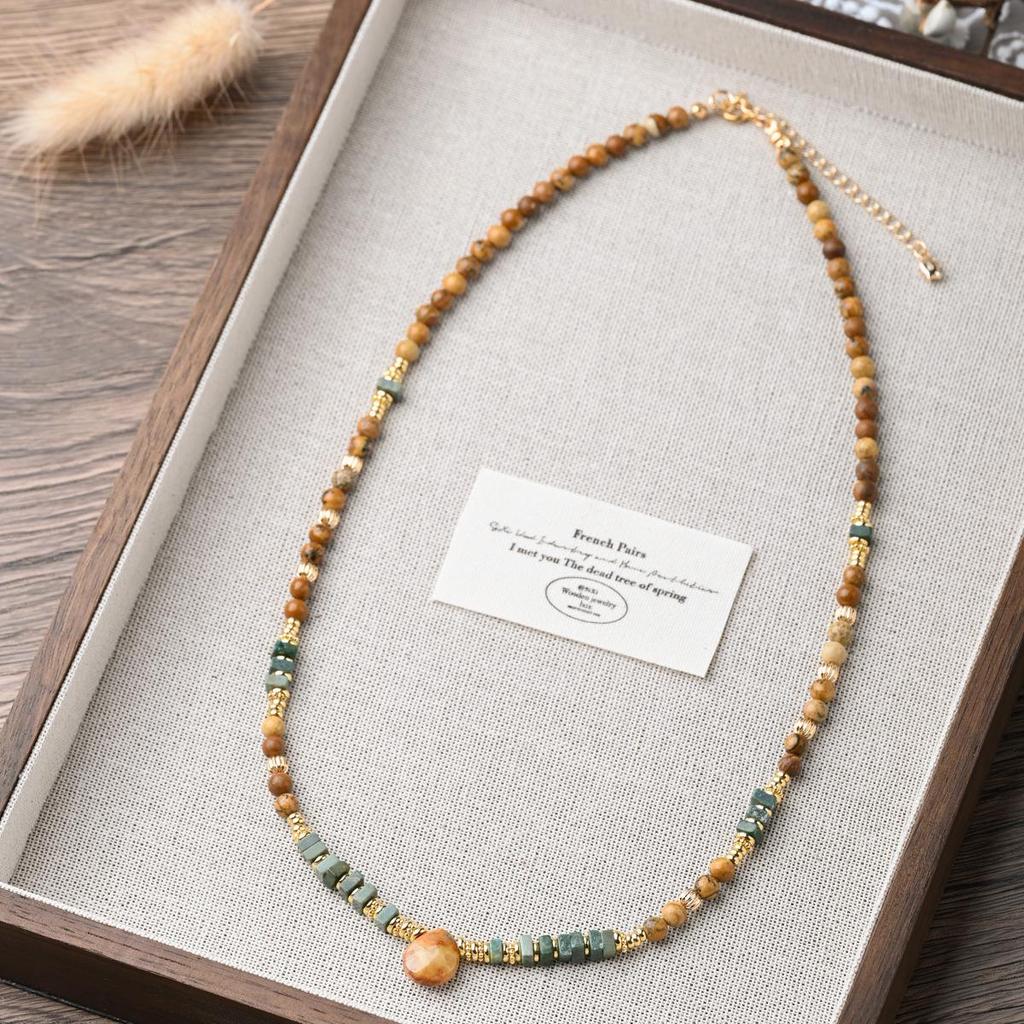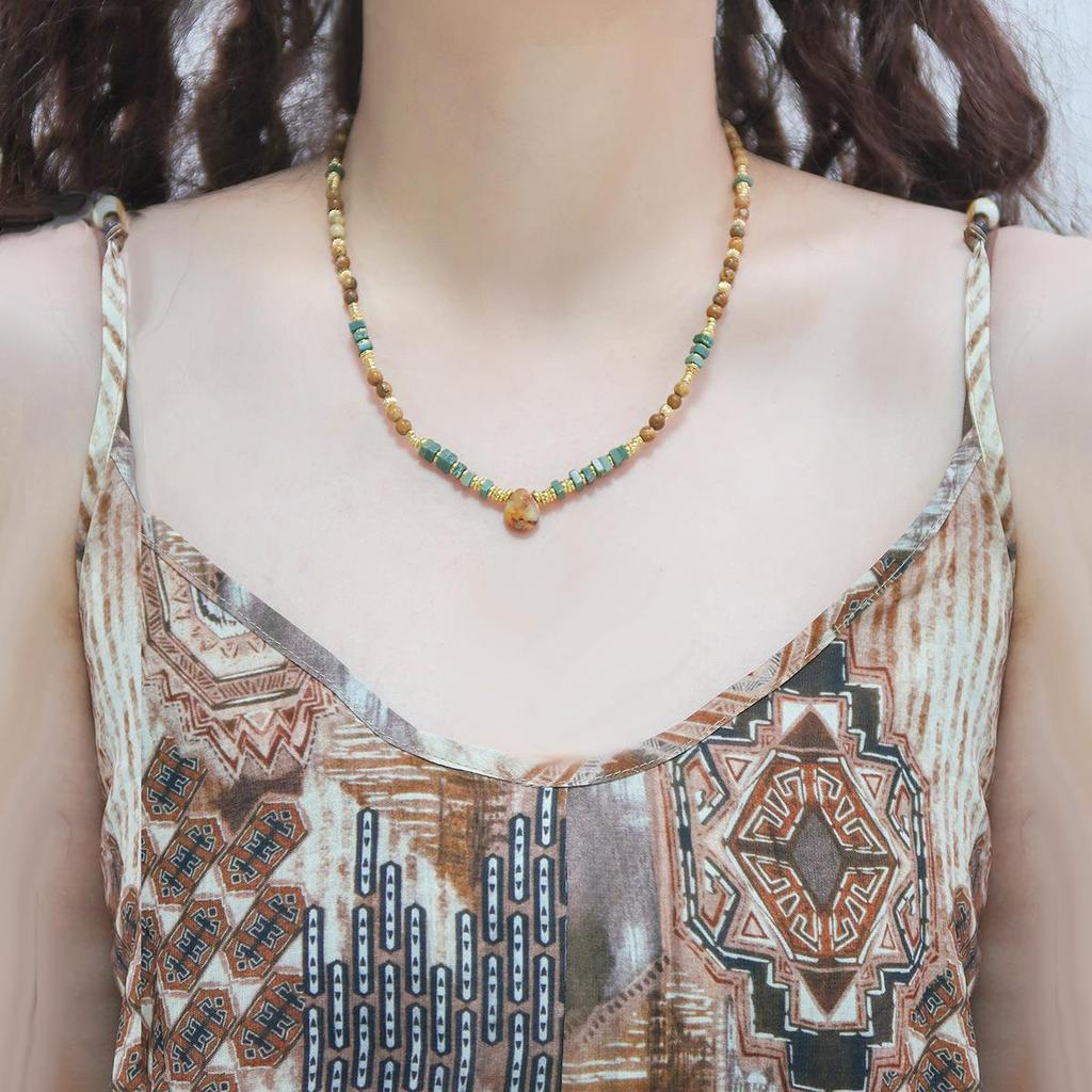 Yellow-Brown Maillard-Style Crazy Agate Cat Pendant Necklace
