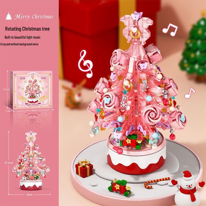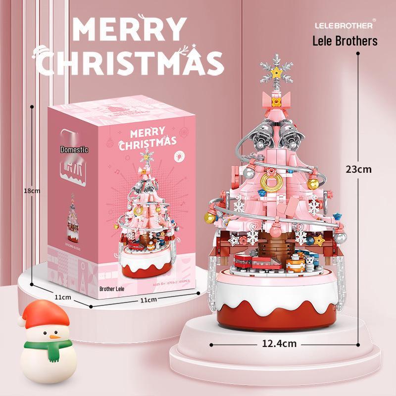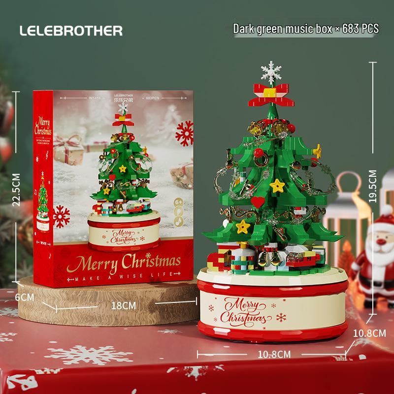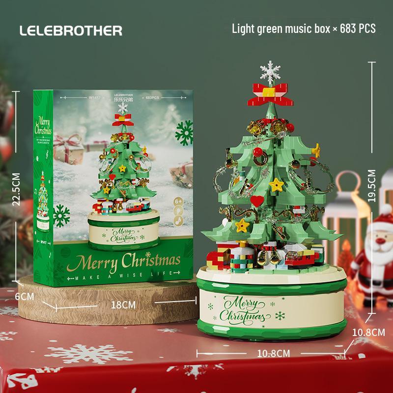 Музыкальная шкатулка в виде рождественской елки, совместимая с LEGO: Светящаяся развивающая строительная игрушка для детей, идеально подходит в качестве украшения на день рождения