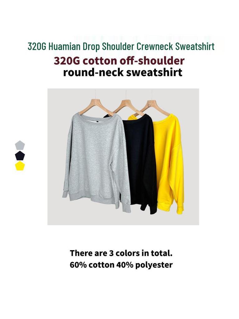 Модный женский свитшот с опущенными плечами - 2025 Huamian, с круглым вырезом, 320 г, свободный крой, пуловер, модная верхняя одежда — купить товар онлайн с бесплатной доставкой по всему миру!