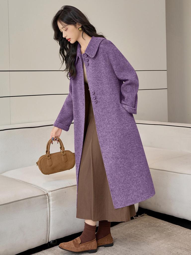 Корейское А-силуэтное кашемировое шерстяное пальто с кукольным воротником на осень/зиму 2025 - Свободное, Мода больших размеров.