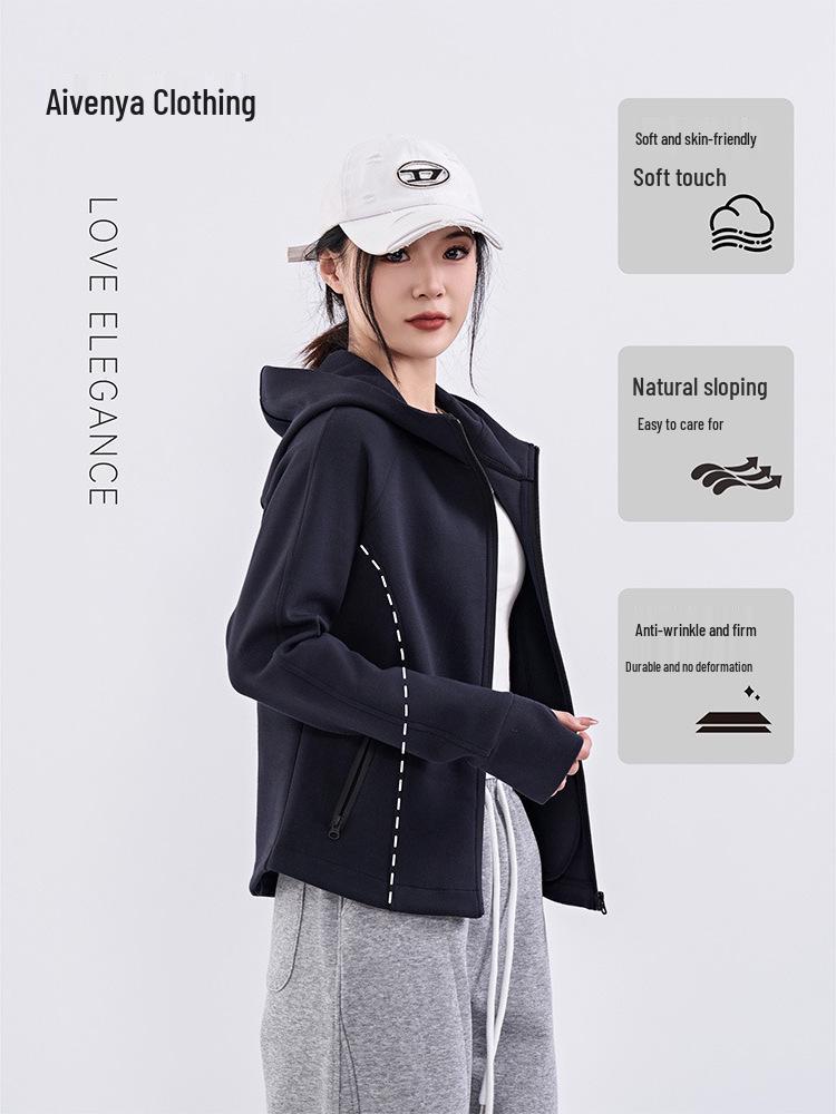 Jimo Women's 2025 Autumn Slimming Hooded Jacket with Zipper, Thickened Air Cotton Cardigan