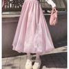 Женская мерцающая розовая А-силуэтная миди-юбка из тюля с дизайном из жемчужных пышных цветов, высокая талия, идеально подходит для весны, лета и осени — купить товар онлайн с бесплатной доставкой до всему миру!