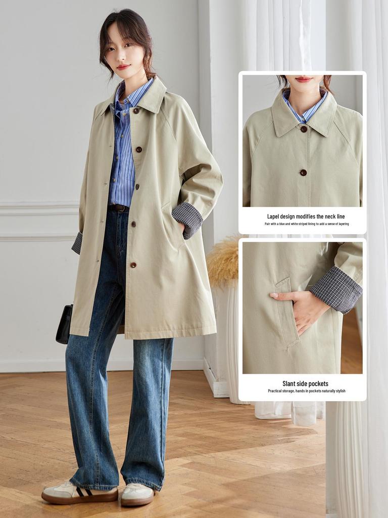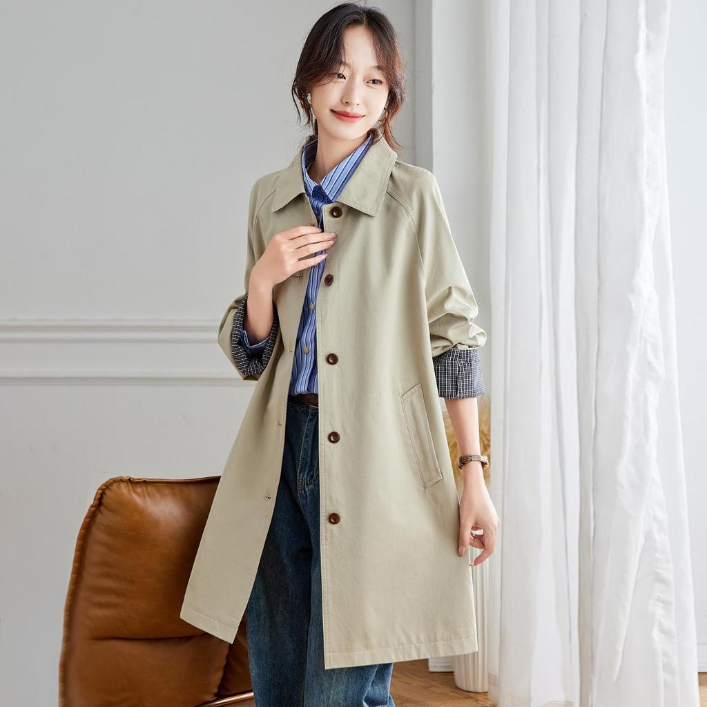 Элегантный Минималистичный Женский Тренч - Корейский Стиль, Свободный Крой, Средней Длины, Приталенный Силуэт