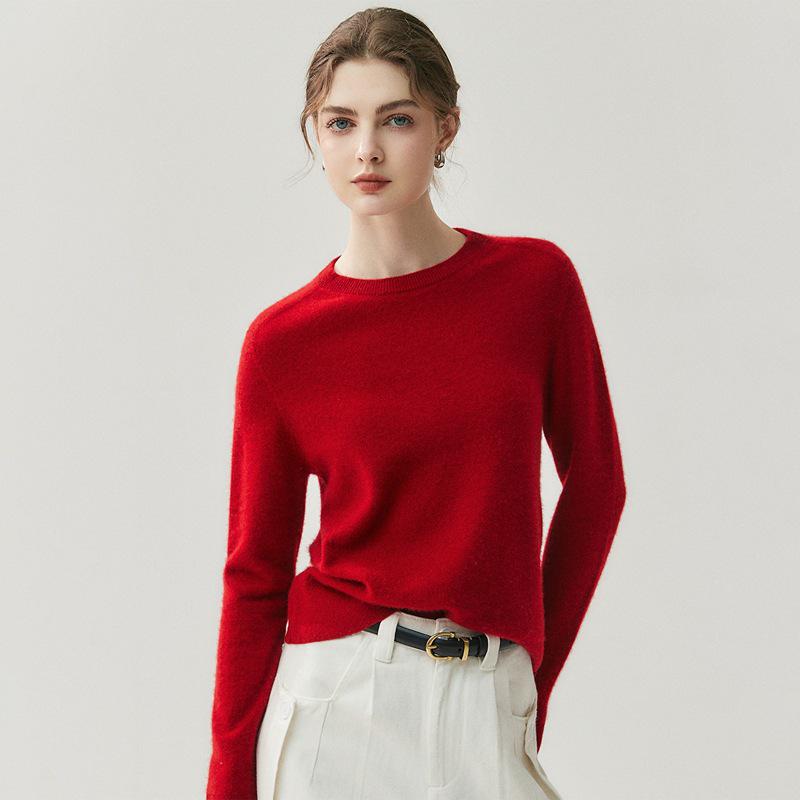 Женский кашемировый свитер с круглым вырезом - Коллекция Осень/Зима 2025, Теплый вязаный базовый слой однотонного цвета — купить товар онлайн с бесплатной доставкой по всему миру!