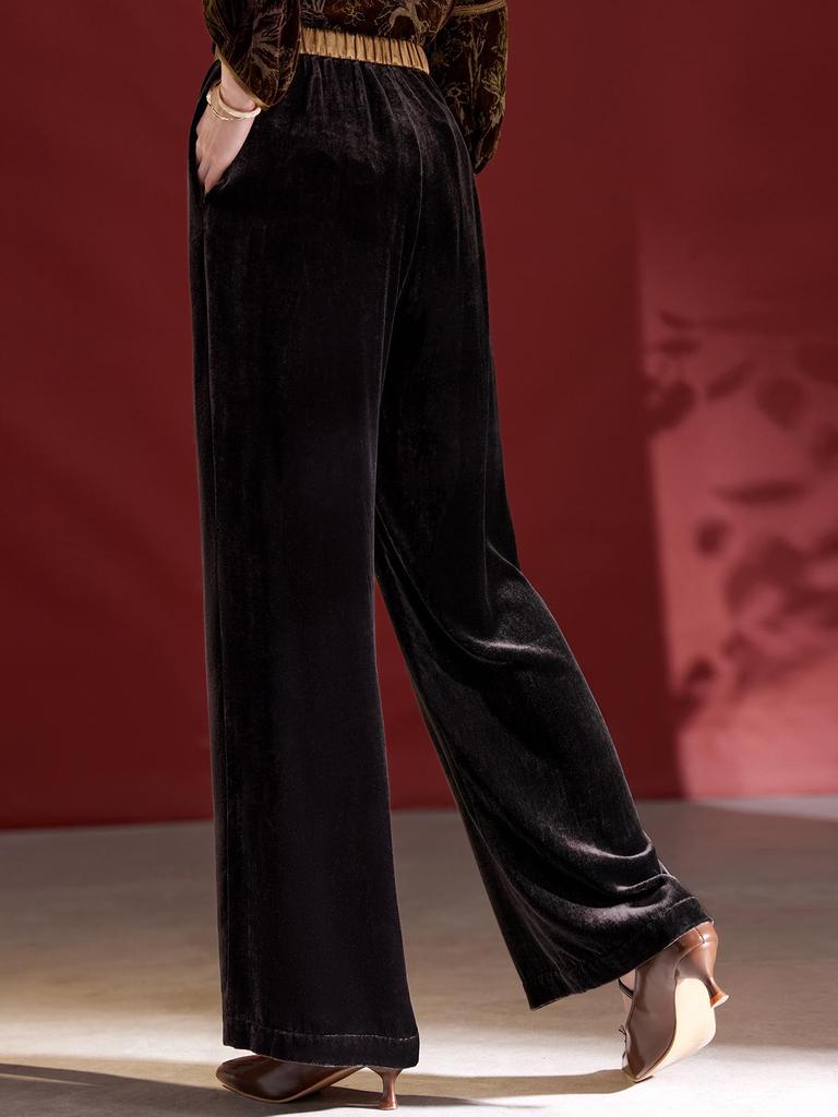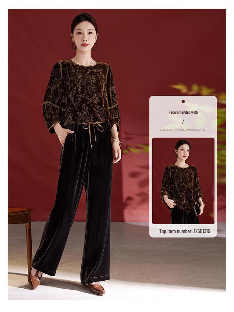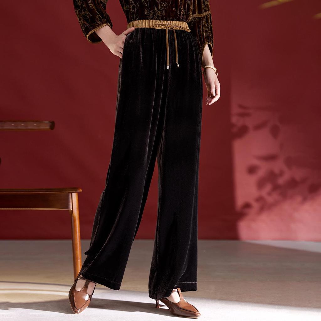 Женские брюки палаццо из высококачественного шелкового бархата - Коллекция Осень/Зима 2025, Свободный крой, Длинные, Повседневные, Идеально подходят для мам среднего возраста