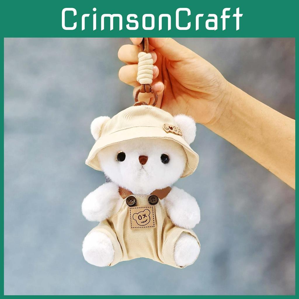 This plush bear toy features a soft, short pile fabric made of high-quality PP cotton filling, measuring 15 cm long with a hanging loop for versatile attachment. Its compact design makes it suitable as a school bag accessory or gift for children. Easy to maintain, it can be wiped clean with a damp cloth.