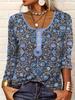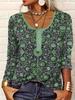 2025 Женская футболка с V-образным вырезом, этническим принтом, на пуговицах, большого размера, повседневная