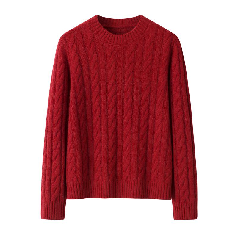 Женский свитер из 100% чистого кашемира с круглым вырезом и кабельным узором — купить товар онлайн с бесплатной доставкой по всему миру!