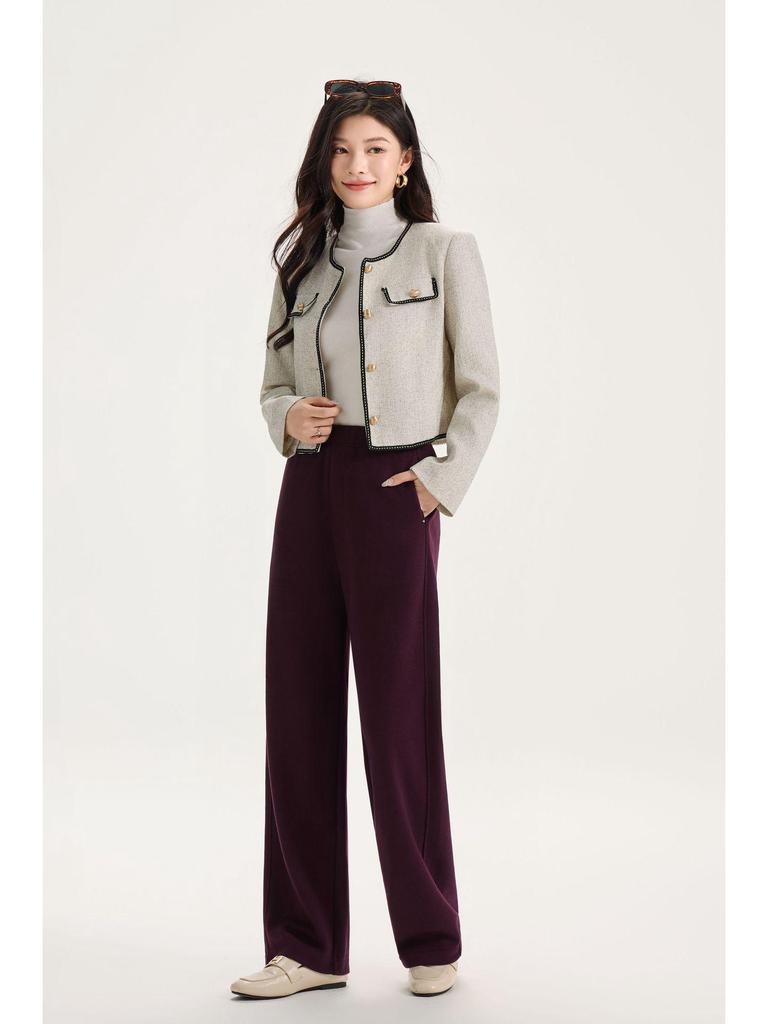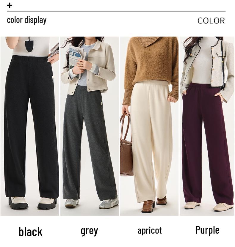 Женские белые флисовые брюки с высокой посадкой из смесовой шерсти - Облегающие, универсальные, прямые/широкие штанины, зимняя повседневная одежда.