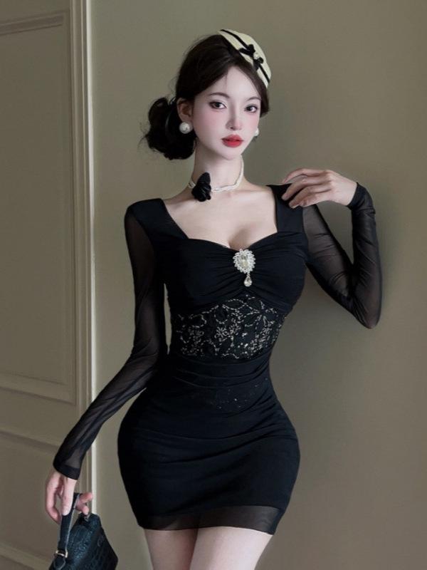 9496 Сетчатое облегающее мини-платье с низким вырезом - Стройнящий, подчеркивающий фигуру стиль — купить товар онлайн с бесплатной доставкой по всему миру!
