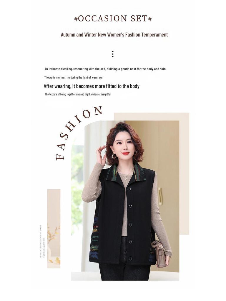 Пополните свой осенний гардероб этой элегантной верхней одеждой без рукавов, разработанной специально для женщин среднего возраста.. Этот жилет большого размера, изготовленный из высококачественного полиэстера, сочетает в себе комфорт и стиль.. Роскошный полиэстеровый мех добавляет нотку изысканности, что делает его идеальным выбором для различных случаев.. Идеальный для многослойности, этот жилет органично сочетает практичность с шикарной эстетикой, обеспечивая вам тепло и модный вид в течение всего сезона.