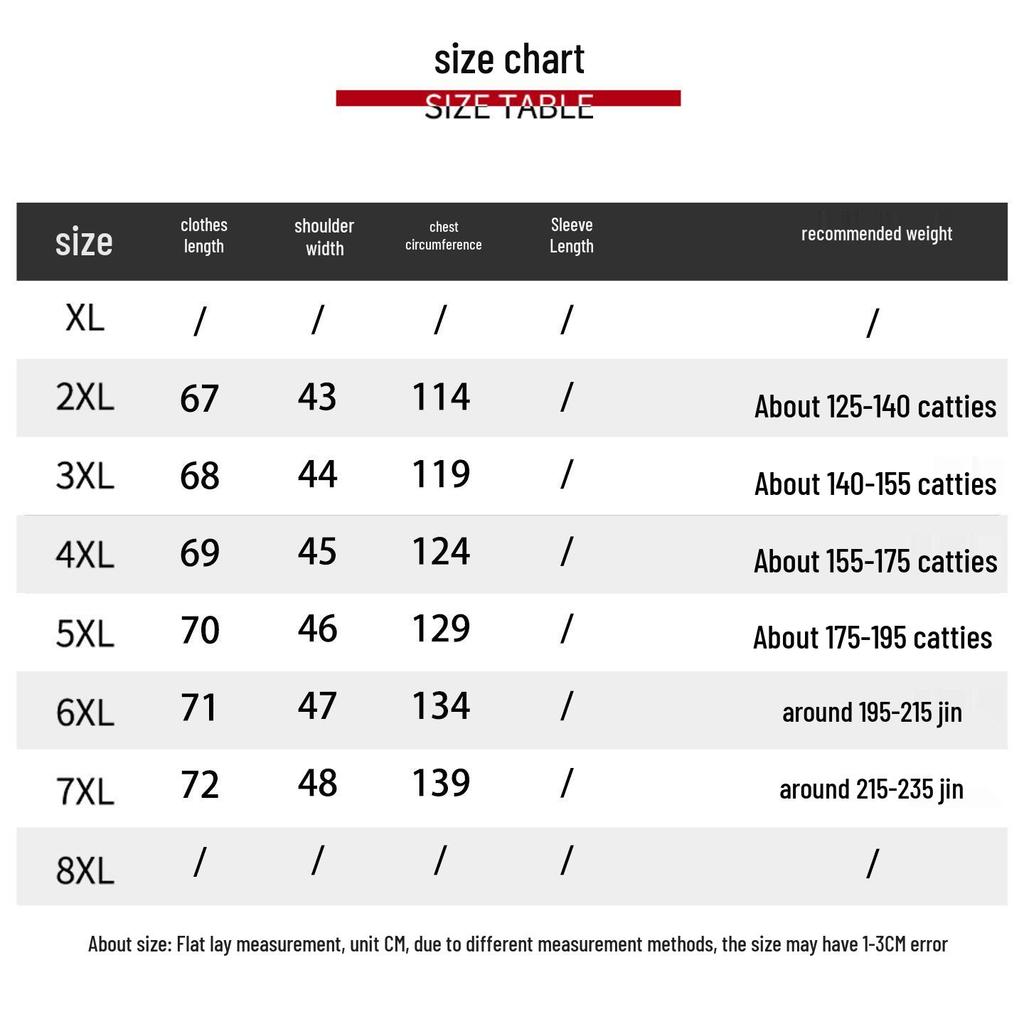 размер: 7XL, бюст: 139см, Плечо: 48 см, длина: 72см, Рекомендуемый вес: 216-235 кг.