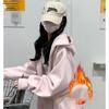Новая коллекция 2025 года: розовая толстовка с капюшоном и кардиган в корейском стиле для женщин — легкий, свободный крой, идеально подходит для ранней осени/весны. — купить товар онлайн с бесплатной доставкой до всему миру!