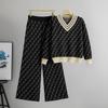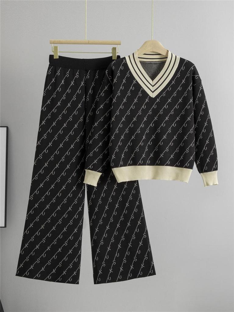 Женский осенне-зимний комплект в полоску: вязаный свитер и брюки-палаццо - стиль «маленький аромат», повседневная спортивная одежда