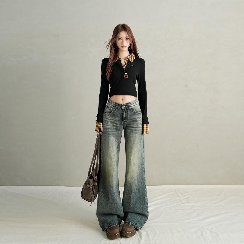 Откройте для себя суть современного стиля с этими изысканными женскими облегающими джинсами с низкой посадкой, идеально подходящими для осенне-зимнего сезона 2025 года.. Изготовленные из премиального денима, эти джинсы предлагают уникальный свободный прямой крой, который элегантно переходит в эффектный силуэт широких брюк длиной до пола.. Улучшенные практичными карманами для дополнительного удобства, они органично сочетают функциональность с модой, предлагая шикарное и универсальное дополнение к вашему гардеробу.