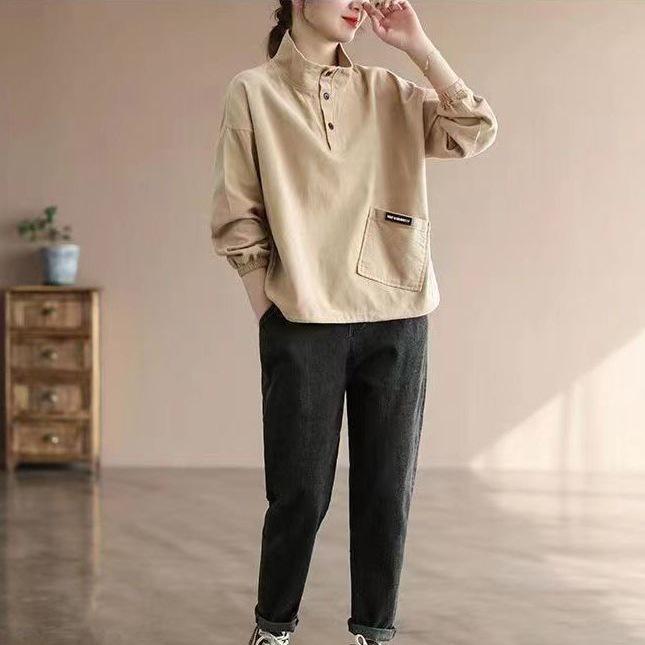 Женская ретро вельветовая куртка-пуловер со стойкой - Свободная, приталенная, больших размеров для весны и осени