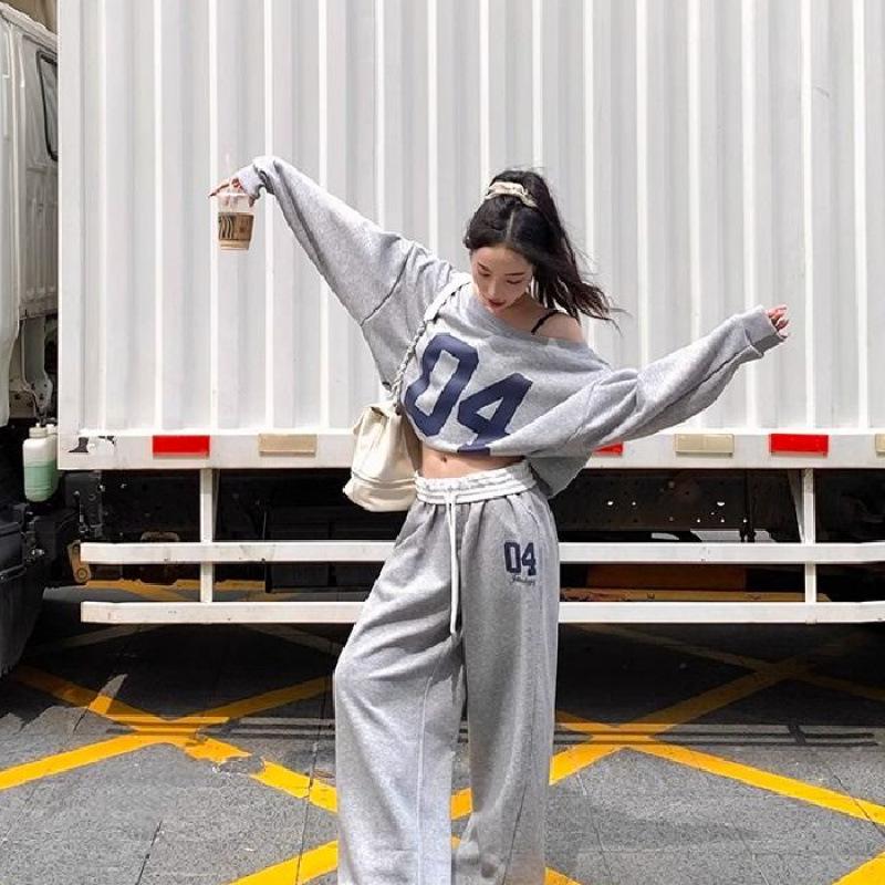 Женский осенний спортивный костюм в корейском стиле: Свободный крой и стройнящие брюки с широкими штанинами, комплект из двух предметов - Модный тренд инфлюенсеров. — купить товар онлайн с бесплатной доставкой по всему миру!
