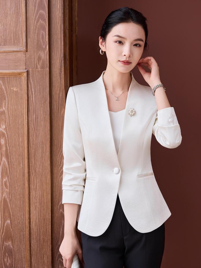 Обновите свой профессиональный гардероб этим изысканным формальным блейзером с белым воротником, идеально подходящим для работы и преподавания.. Этот блейзер, искусно изготовленный из высококачественного полиэстера, обеспечивает как долговечность, так и комфорт, гарантируя, что он сохранит свой свежий, отполированный вид в течение всего дня.. Изящный дизайн имеет классический крой, который дополняет любой наряд, а мягкая полиэстеровая подкладка обеспечивает роскошное ощущение на коже.. Этот блейзер, созданный для современного профессионала, является незаменимым дополнением к вашей осенней коллекции, органично сочетая стиль и практичность и улучшая ваш повседневный наряд.