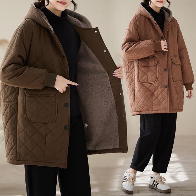 Женская стеганая хлопковая куртка средней длины с капюшоном – Теплая овечья шерсть, Доступна в оранжево-красном, кофейно-зеленом, черном цвете — купить товар онлайн с бесплатной доставкой по всему миру!