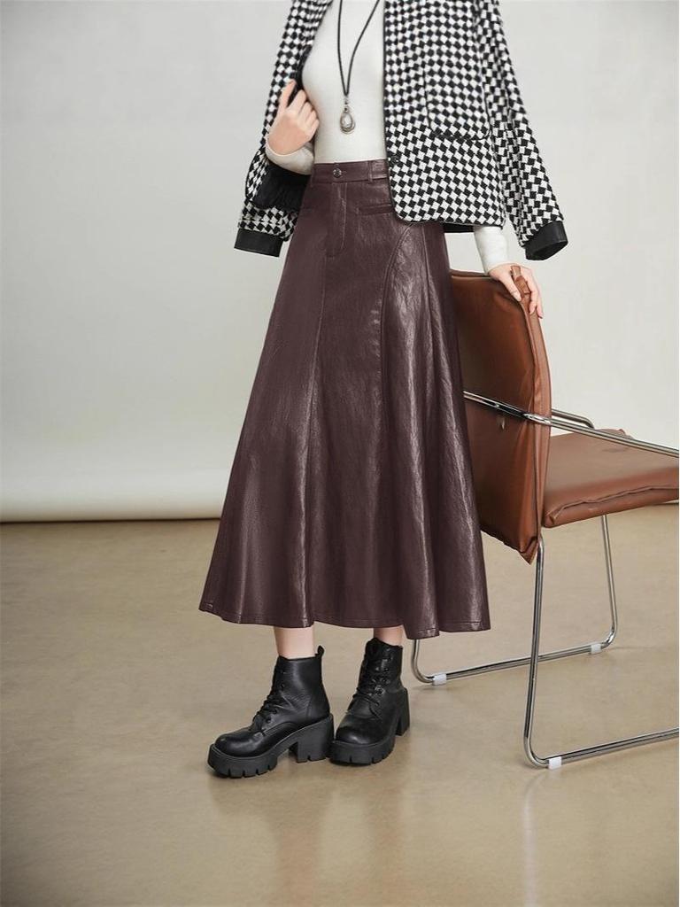 Дополните свой осенне-зимний гардероб этой изысканной миди-юбкой А-силуэта с высокой талией.. Изготовлено из натуральной кожи, имеет неподвластный времени однотонный узор, который обеспечивает универсальность и элегантность.. Юбка украшена изысканным пэчворком и стегаными деталями, добавляющими текстуру и интерес ее классическому силуэту.. Созданное для комфорта и стиля, это изделие органично сочетает современную моду с традиционным мастерством, что делает его незаменимым дополнением к любому сезонному ансамблю.. Идеально сочетается с ботинками и уютным трикотажем, воплощает шикарную, современную моду для прохладной погоды.