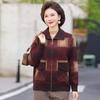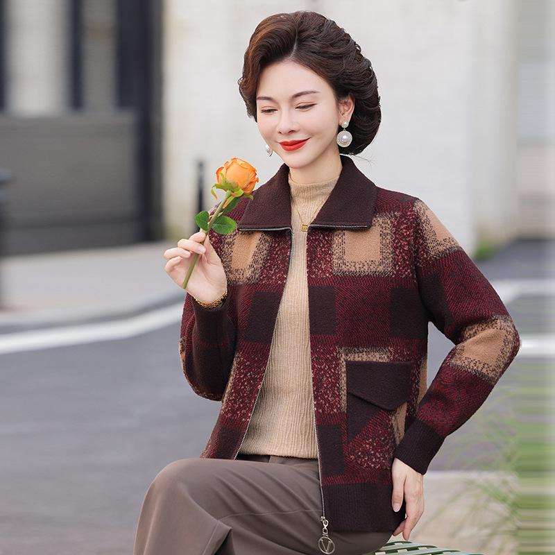 Клетчатый кардиган на молнии с лацканами из корейского бархата для женщин среднего и пожилого возраста – осенне-зимнее трикотажное пальто
