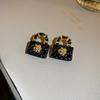 Геометрические серьги-пусеты из серебряной иглы и черного кристалла, нишевые универсальные серьги, темпераментные, легкая роскошь, премиальные серьги