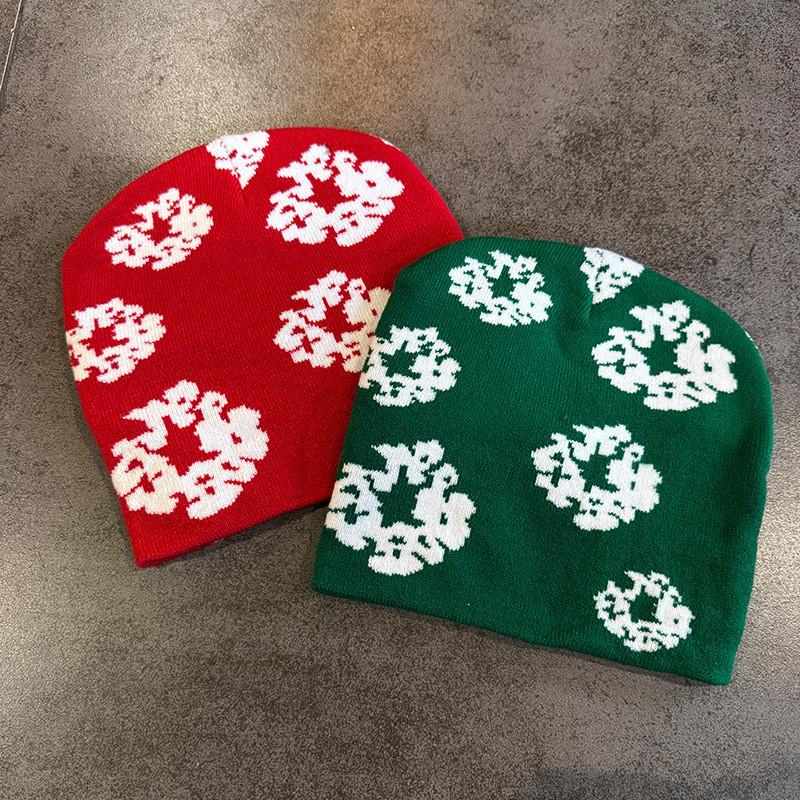 Вязаная модная шапка с цветочным принтом и функцией сохранения тепла для холодных сезонов.