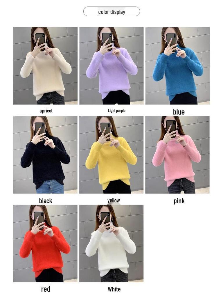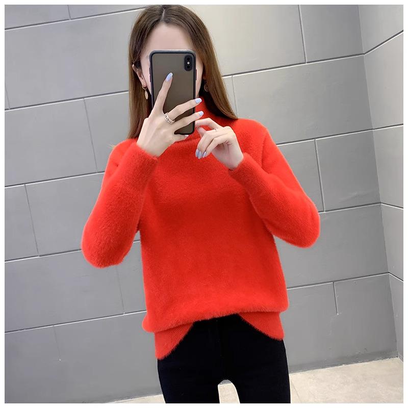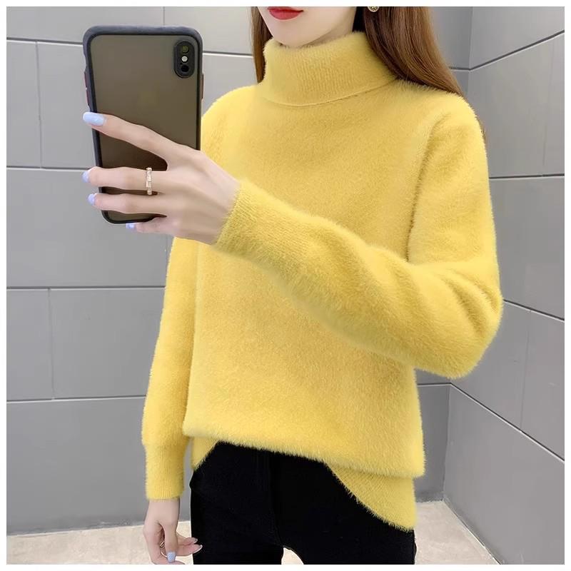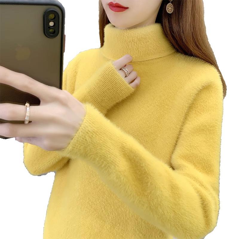 Женский свитер из норкового кашемира с высоким воротником - Однотонный, плотной вязки, модный пуловер для осени/зимы 2025